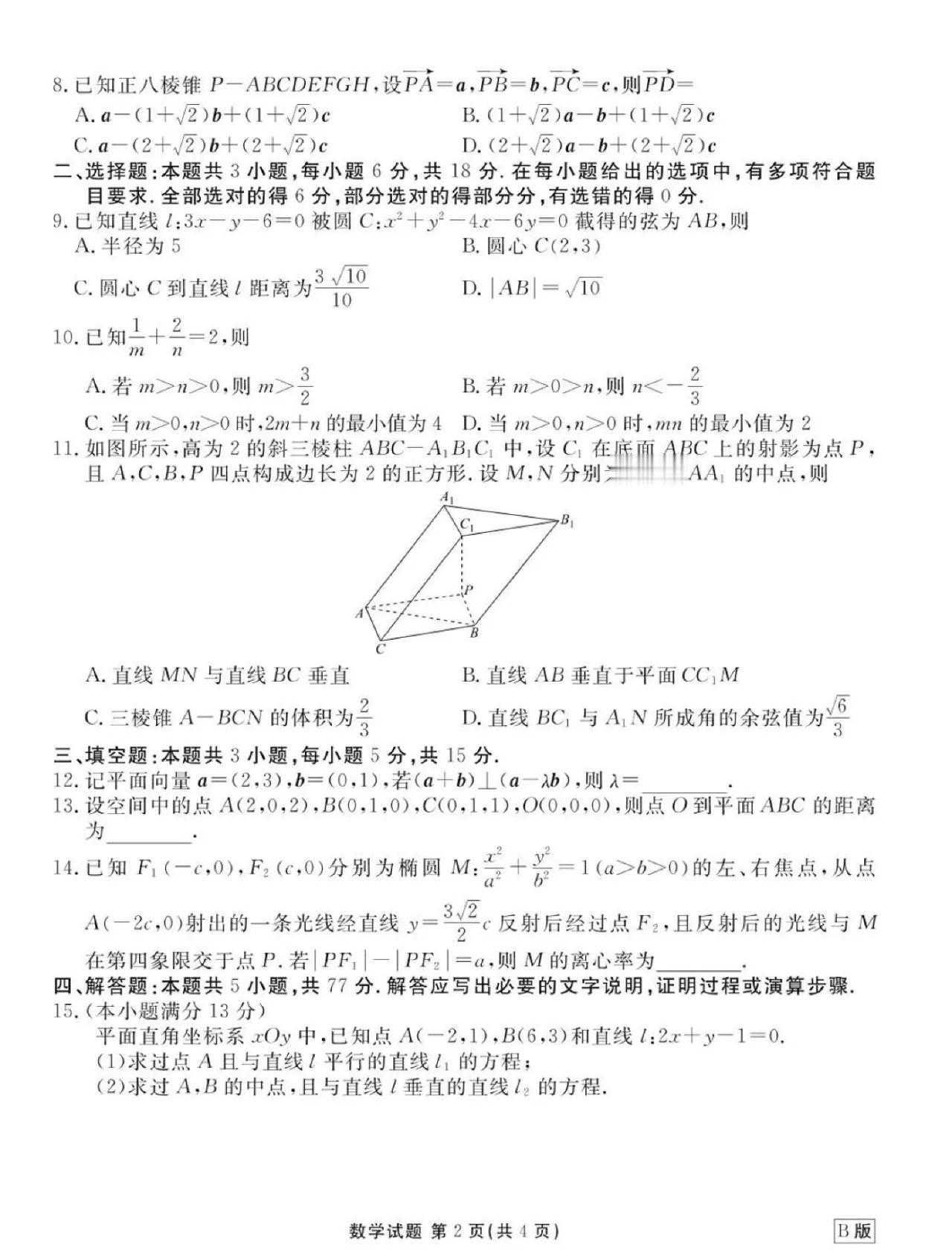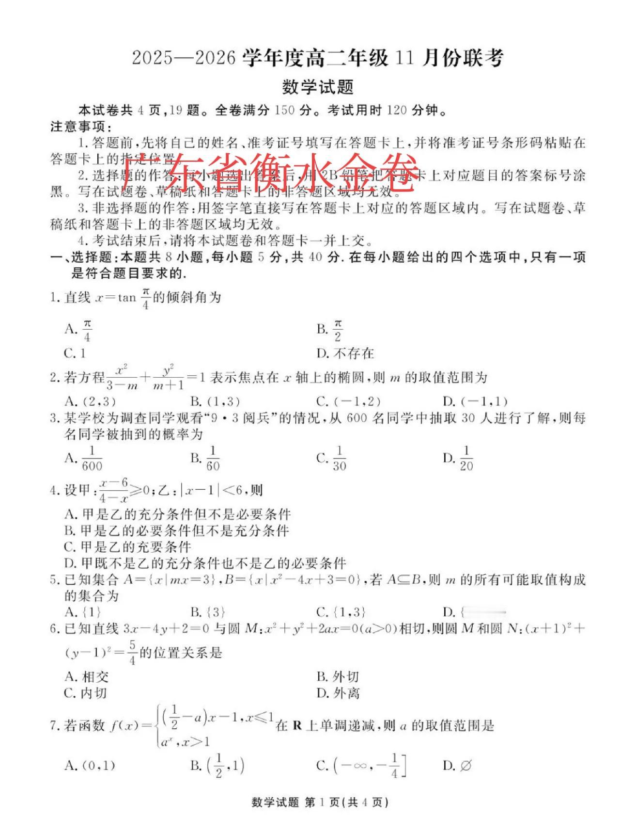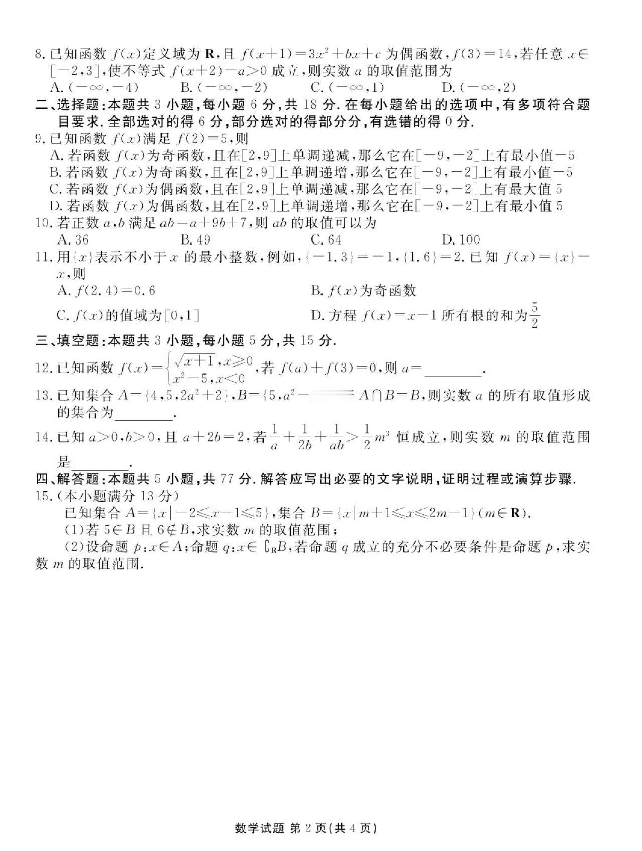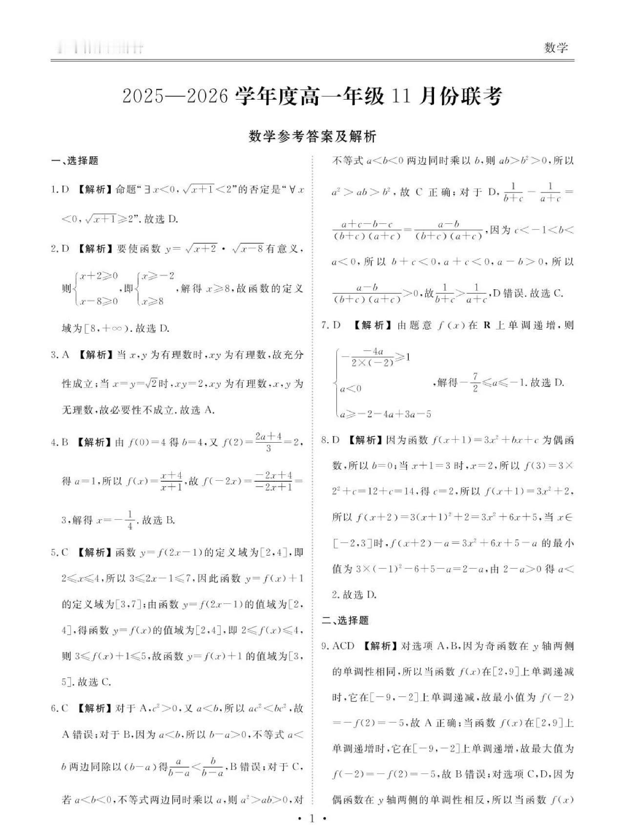 广东省 2025年 高一、高二数学上期中考试单选题多选题填空题大题及其详细解答。