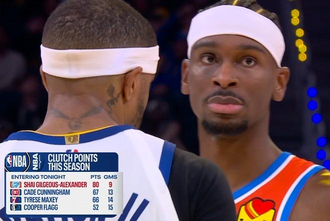 本赛季关键时刻得分榜: 1、亚历山大:80分,9场 2、康宁汉姆:67分,13场 3、马克西:66分,14场 4、弗拉格:52分,15场 这是本赛季前20场比赛的统计,亚历山大只打了其中9场,其他的比赛,全部三节打卡下班,然后他的场均得分是32.8分.... 从命中率上看 3-10英尺:50% 10-16英尺:58.3% 16英尺-3分线:51.3% 三分球:43.4% 很多人还在说亚历山大的罚球,从这赛季开始,看看他的中投和三分吧,命中率太高了,太稳定太靠谱,皮尔斯甚至说他的中距离已经给人有乔丹的威慑力了。 这赛季保持这个战绩,只要不受伤,亚历山大绝对是有希望蝉联常规赛MVP的,他现在高阶数据也不虚约基奇了,天天三节打卡,还能在得分上紧追东契奇,且此人通常面不改色,场上有任何问题,他上来就能解决,这个能力,可以和约基奇竞争一下当世第一人的名头了。