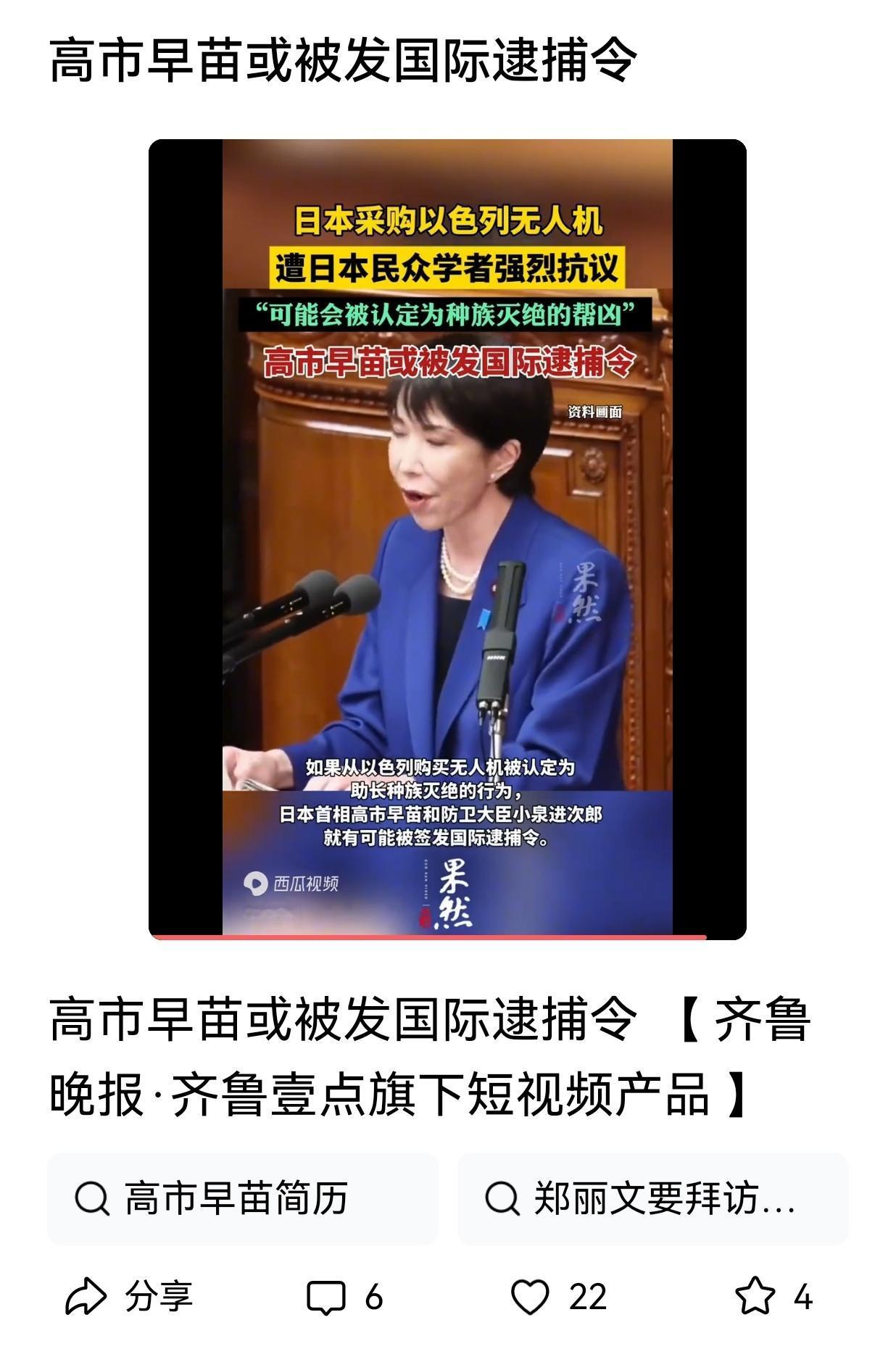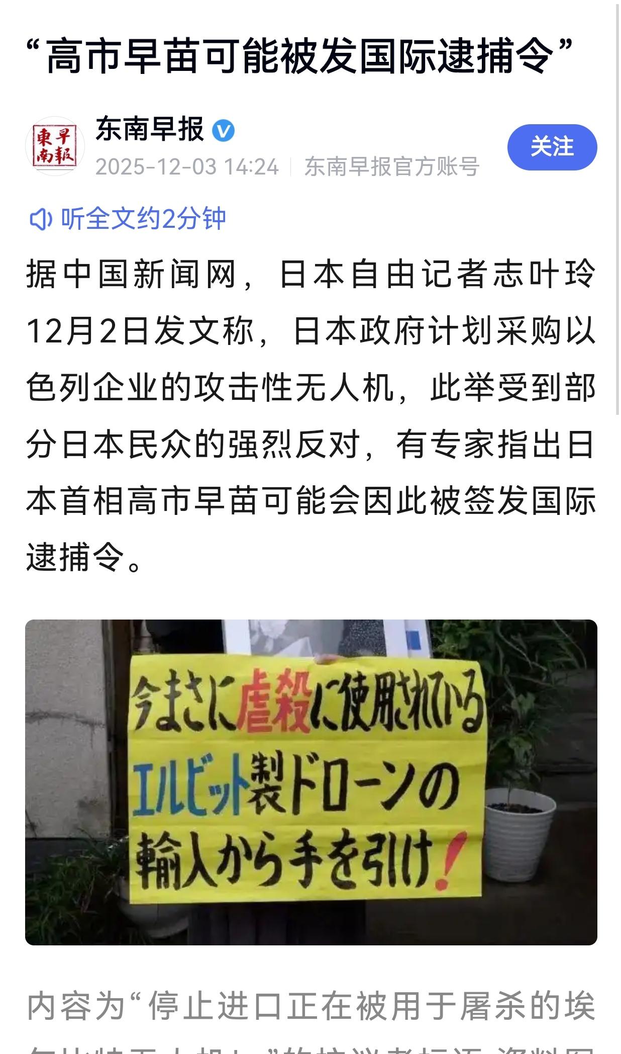 日本采购以色列无人机,“可能会被认定为种族灭绝的帮凶”,高市早苗有可能被国际通缉。 这个可以有!