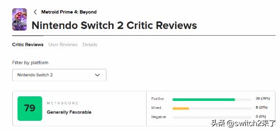 《银河战士Prime 4:超越》口碑已解禁,M站媒体均分79分。其中30家媒体给出好评,8家媒体给出中评,0家媒体给出差评。 Nintendo Life给出90分好评 Game Informer给出88分好评 GameSpot给出80分好评