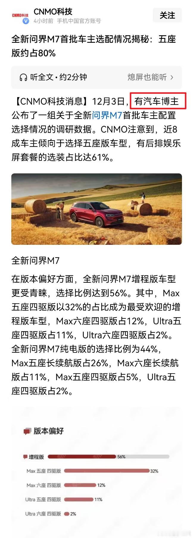 有科技媒体转载了我们的M7车友群调研结果咱就是说,能不能互相道个名字!我先来,这家科技媒体叫做“CNMO(手机中国)”