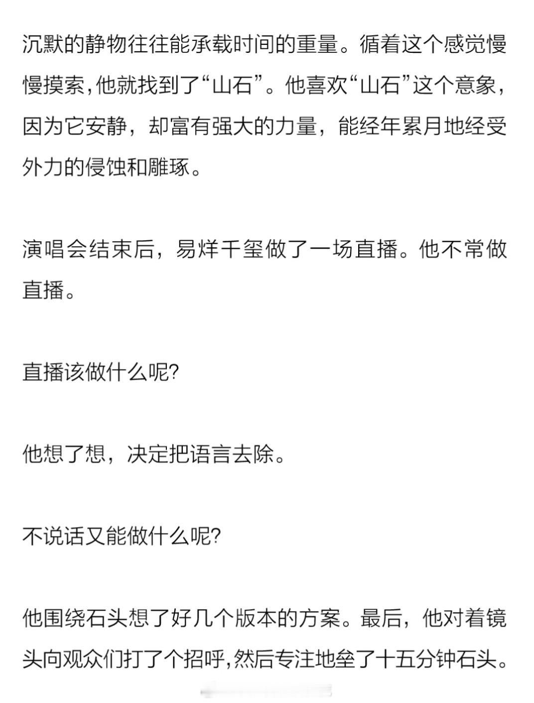 可爱的直播方案易烊千玺因身体原因终止原定进组安排易烊千玺的直播方案是自己围绕石头想的