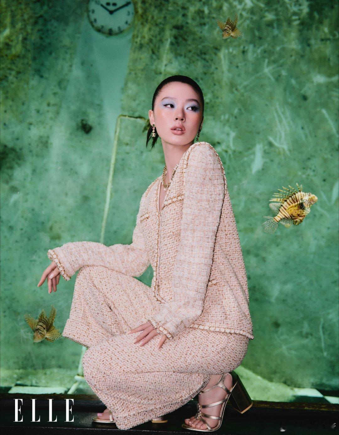 单依纯在海与陆的交界,梦与现实交织,每一步都是诗意的远方。单依纯ELLE80周年收官封单依纯海陆世界大片
