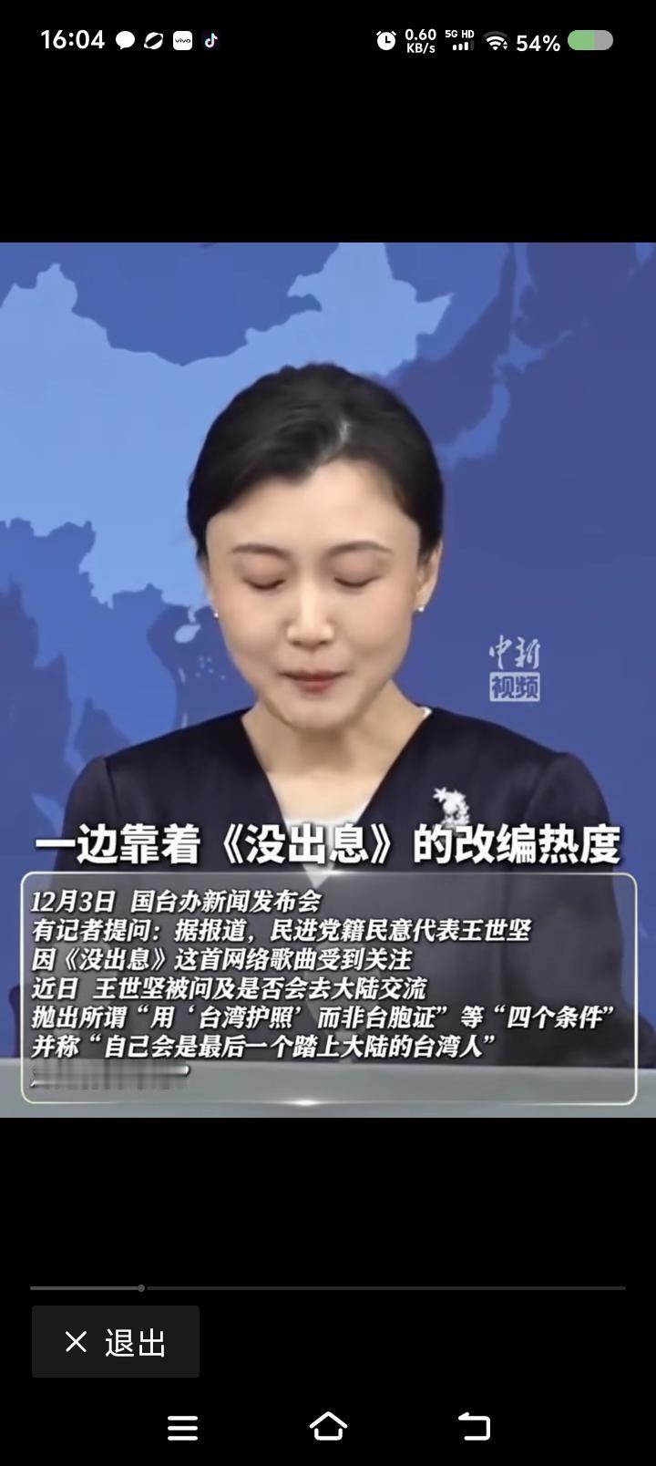 对现代汉语有必要翻译一下—— 据报道,有记者问国台办发言人:“台湾省民进党的王世坚因网络歌曲《没出息》受关注,被问是否会去大陆作交流,他回应,‘用台湾护照,而不是台胞证,自己会是台湾最后一个去大陆的人。’对此,你如何评论?” 发言人说:“你提到的这个人,一方面靠歌曲热度在网络上赚眼球,一方面大放厥词刷存在感,这种自作矛盾的作秀,真是‘没出息’。” 点评: 一、这段话我读了20分钟,才明白什么意思。现代汉语也需要个翻译—— 利用大陆掀起的网络热度赚利益,又仇恨大陆制造分裂,这种“台du”伎俩没出息。 二、问王世坚的那个人也是缺乏政治常识,对“台du”分子怎么能抱希望?他们来大陆交流?交流什么?判了死刑执行时是枪毙还是注射?我实在想不出别的交流内容。