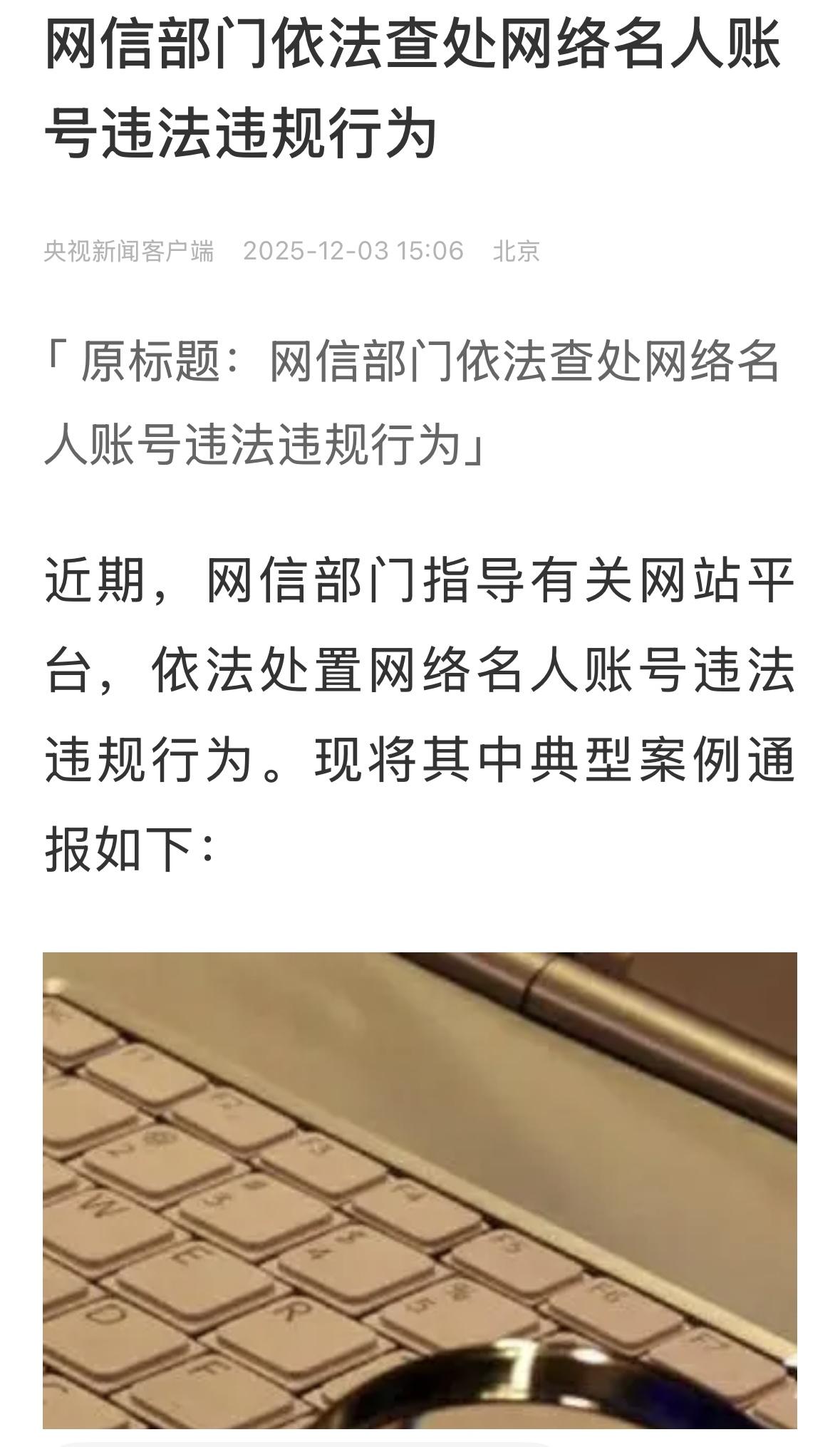 张雪峰在直播中长时间使用污言秽语,已限期禁言、停播。近期,已有一批大V网红因为各种违法违规原因,被禁言、停播、销号!