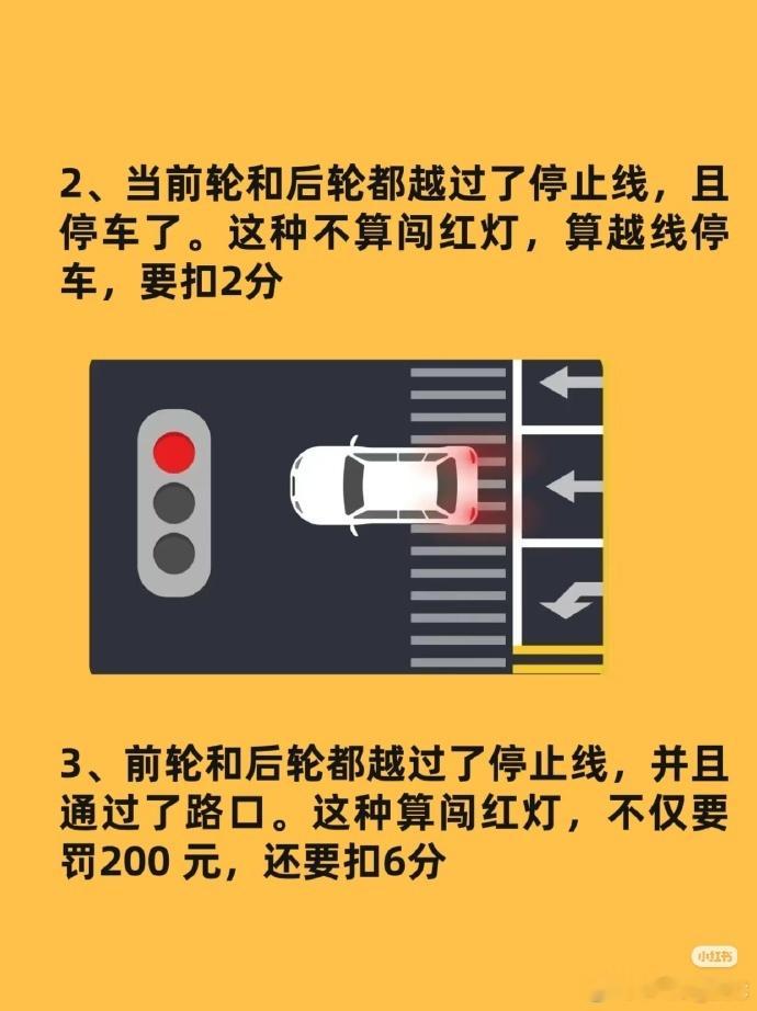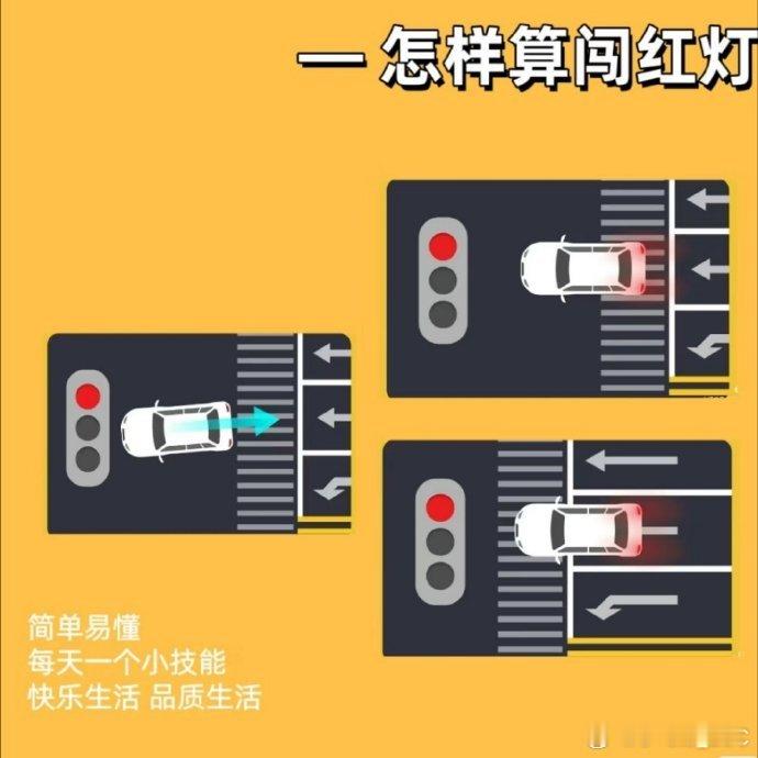 刚在某书上看到怎么样才算闯红灯,这个图示挺好的值得分享闯红灯是指违反交通信号灯,在红灯亮起时越过停止线并继续行驶的行为。一般情况下,闯红灯以“三次成像”为判定依据:①车辆未到达停止线,辨明车辆信息、道路信号灯、停止线的照片②辨明车辆驶过停止线的照片③辨明车辆越过停止线后向前位移的照片最稳的方法还是不要去闯黄灯最安全。