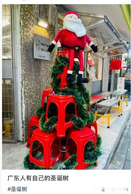 好惊艳啊! 广东人有自己的圣诞树🎄 别说,这几张红色塑料凳真的红装素裹,万分妖娆啊! 哎,圣诞老人,我许一个愿:愿广州早点入冬吧!!! 最好冷的久一点!