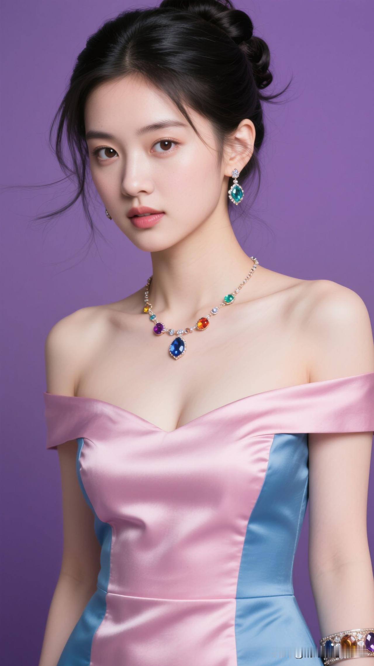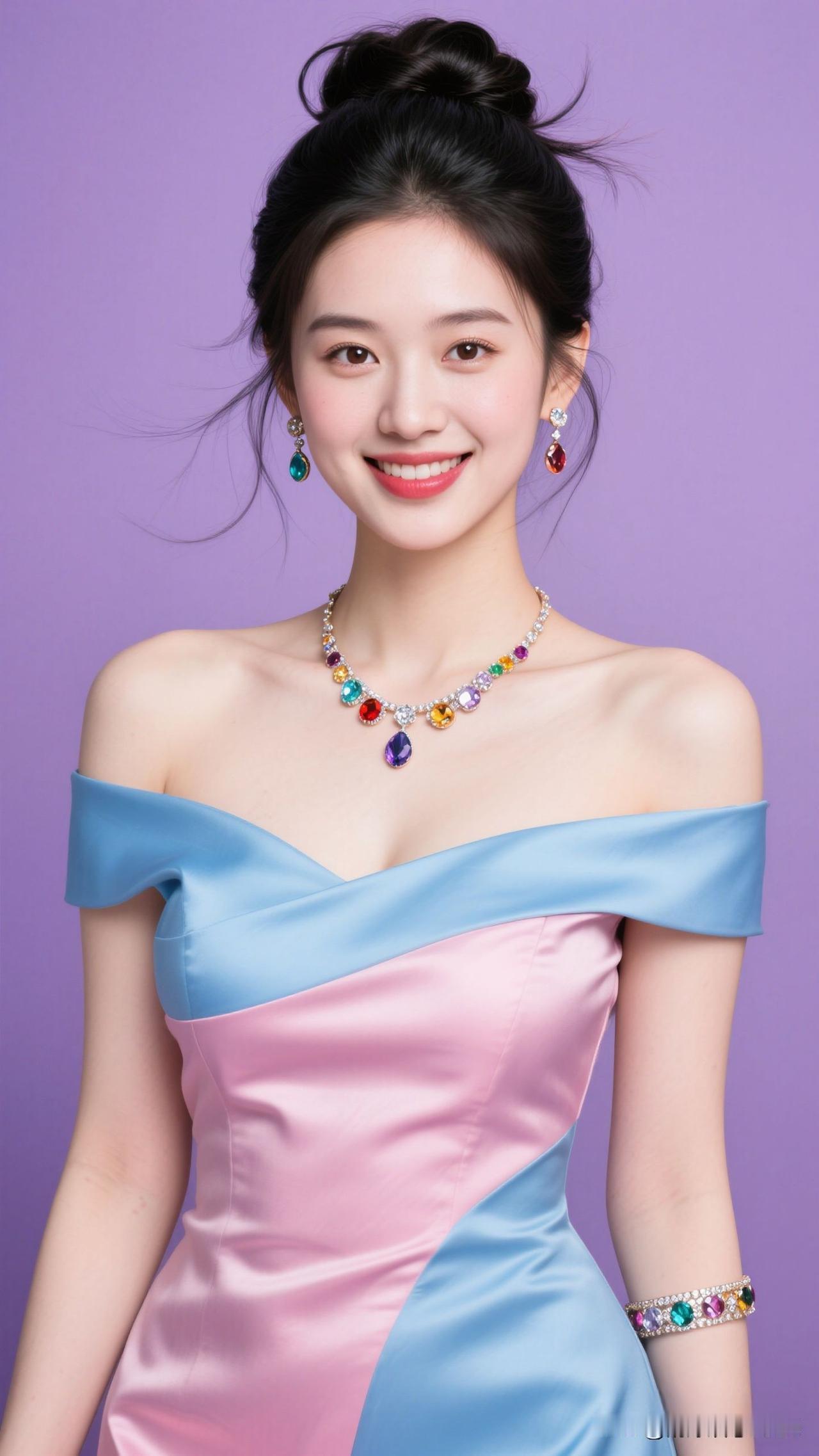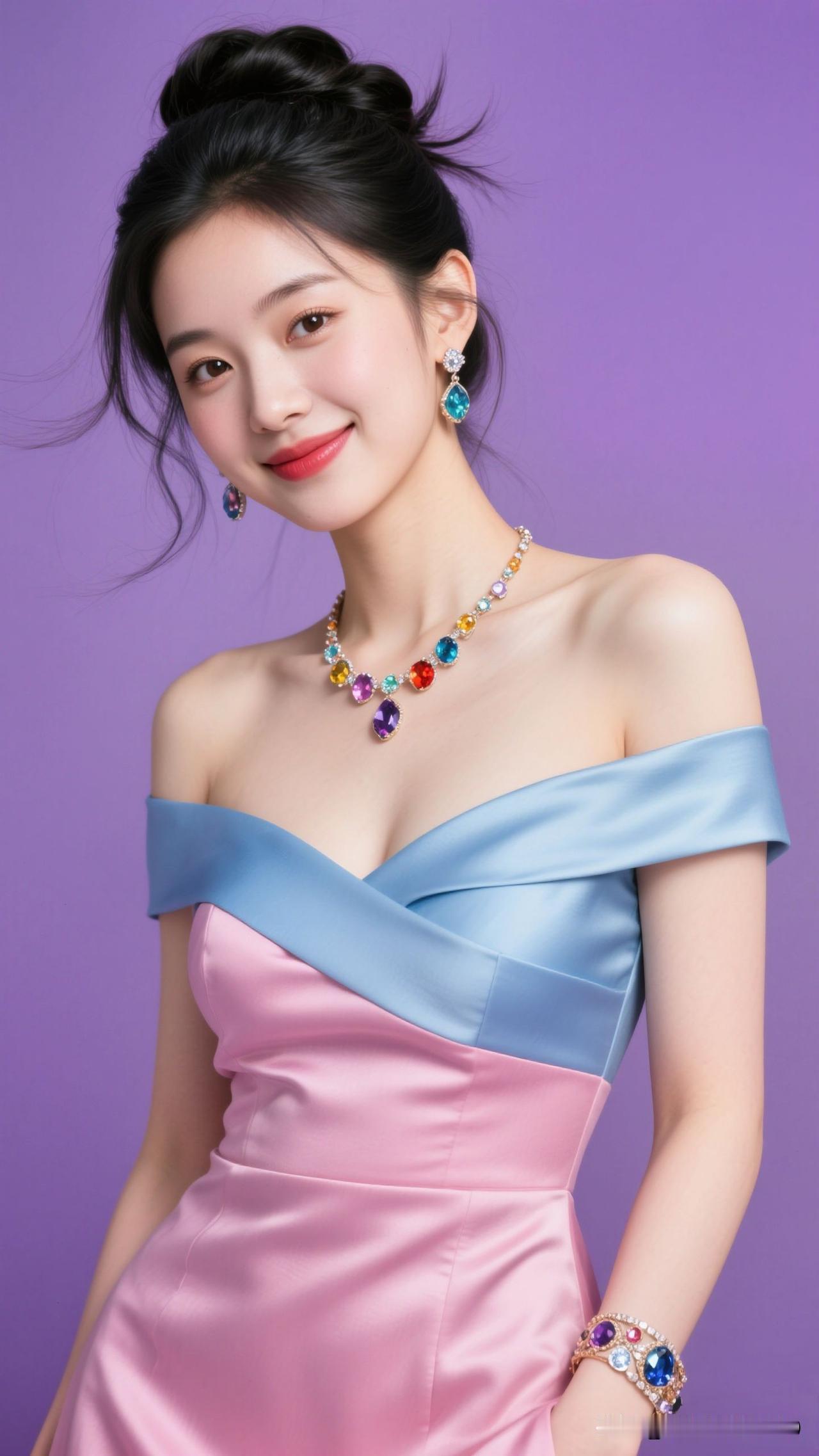 紫衣美人笑,珠光玉色间。粉纱花衣美人紫裙时尚照粉花蓝裳美人紫衣美女紫裙明