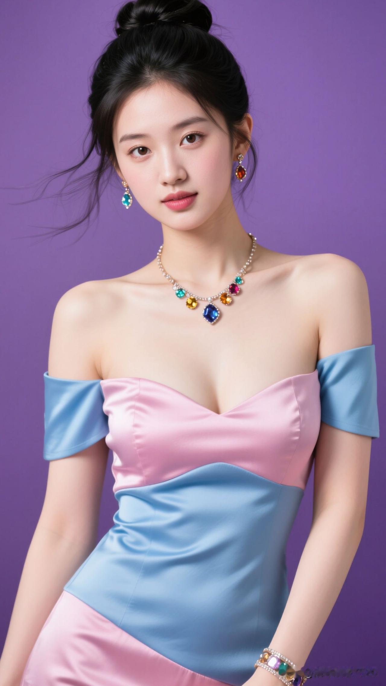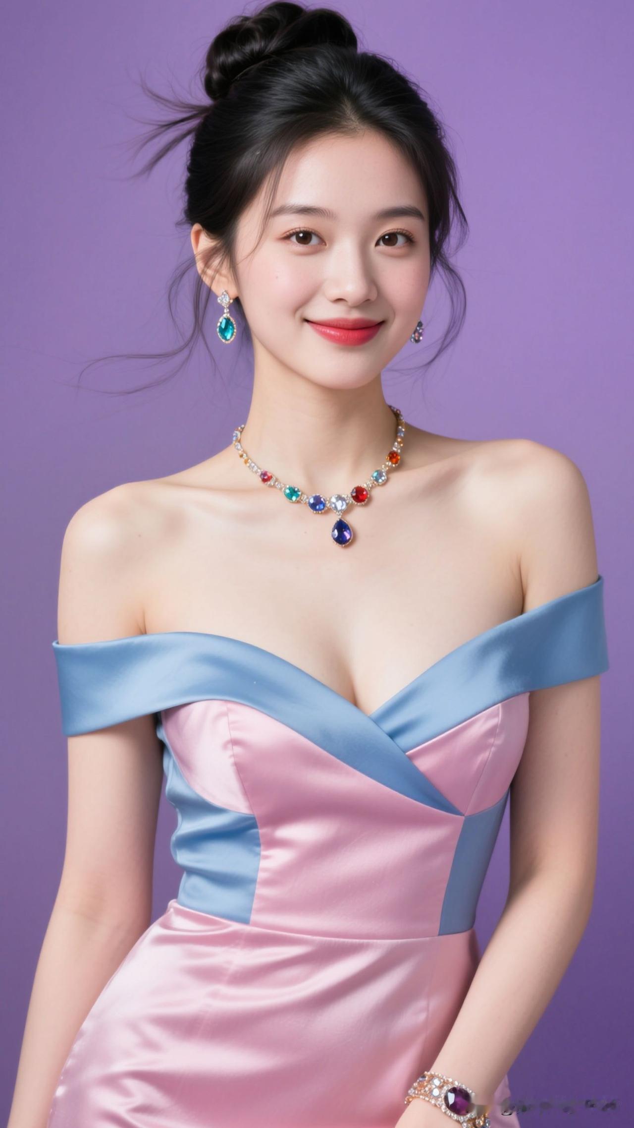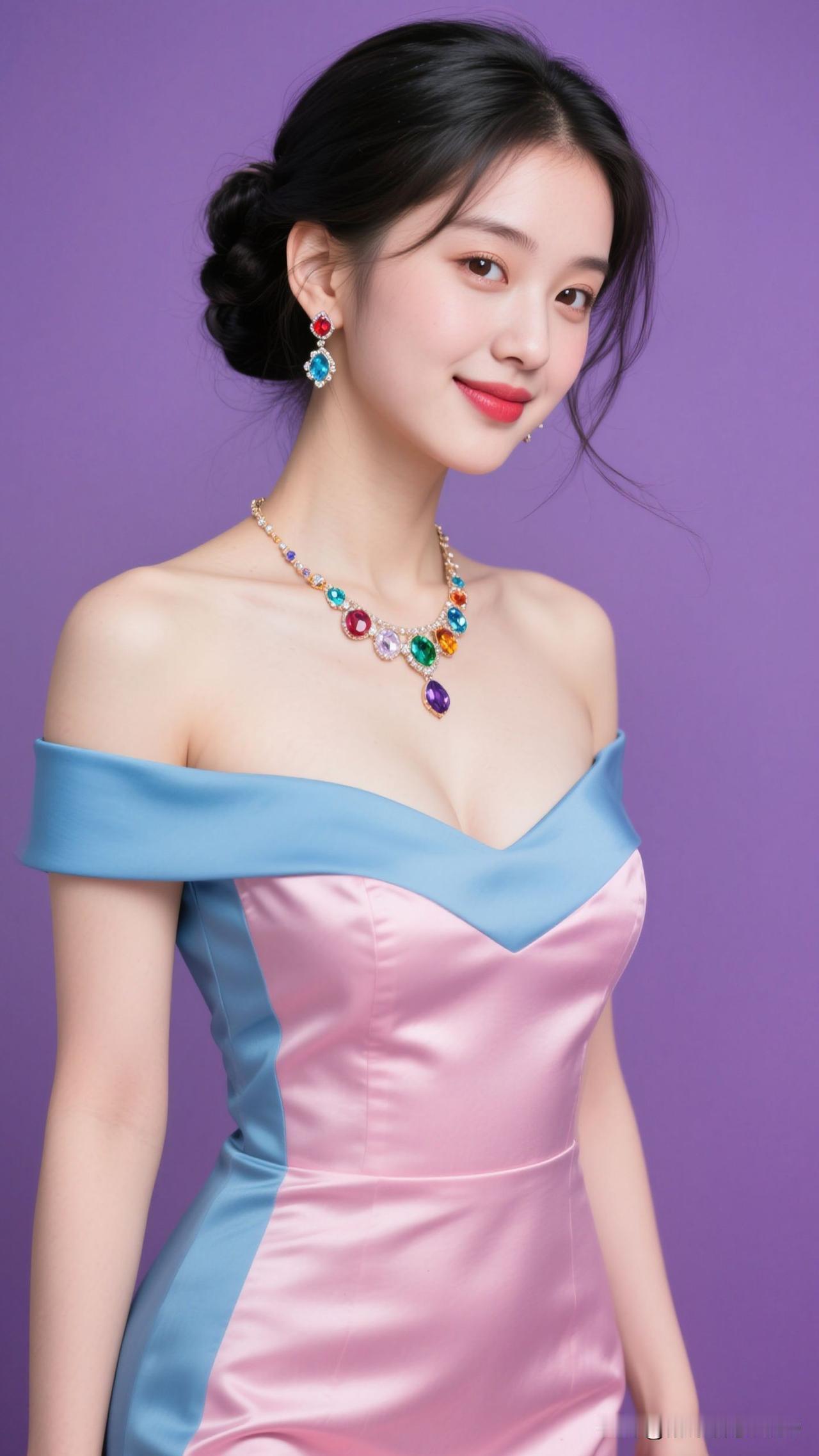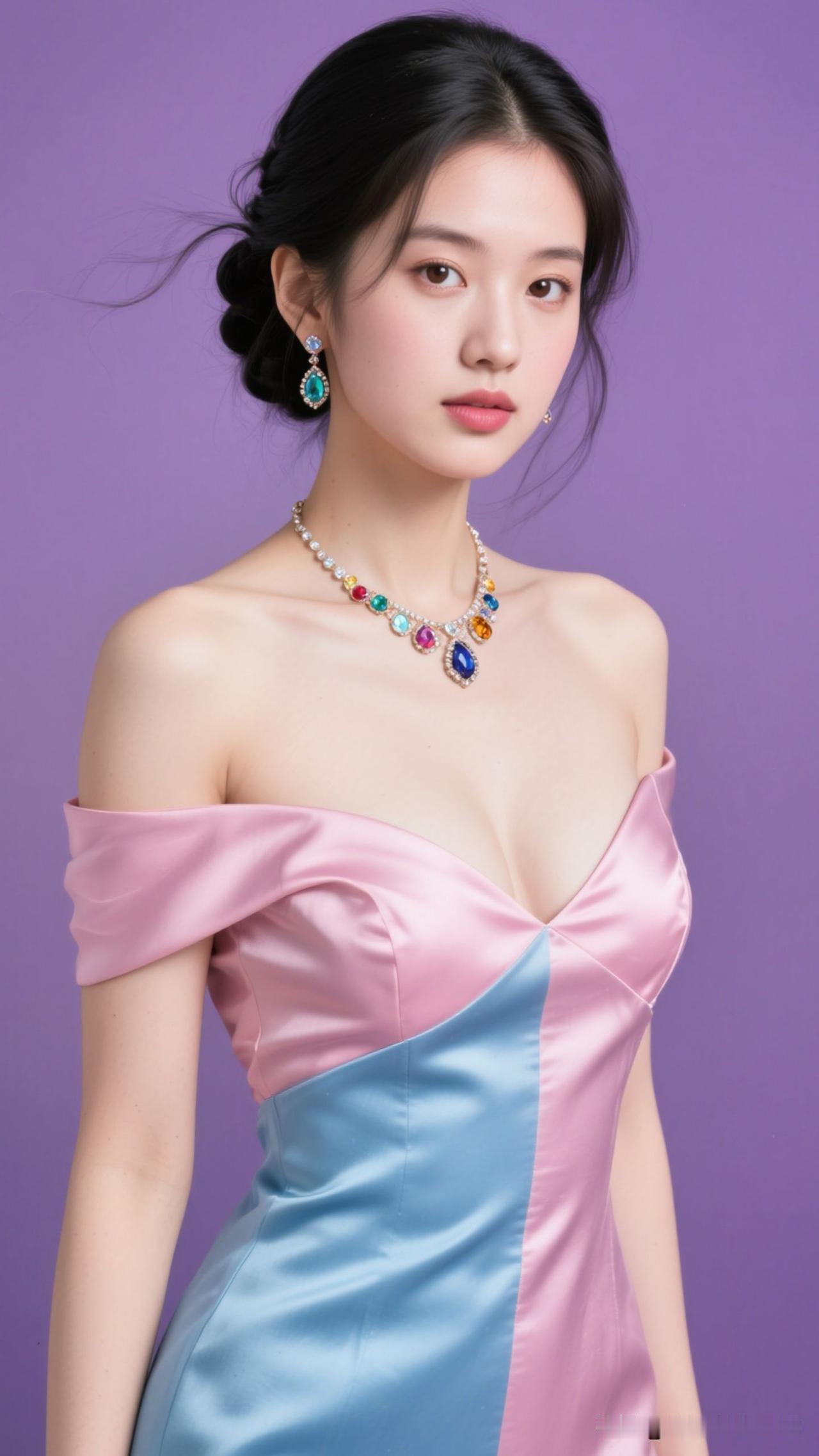 紫衣美人笑,珠光玉色间。粉纱花衣美人紫裙时尚照粉花蓝裳美人紫衣美女紫裙明
