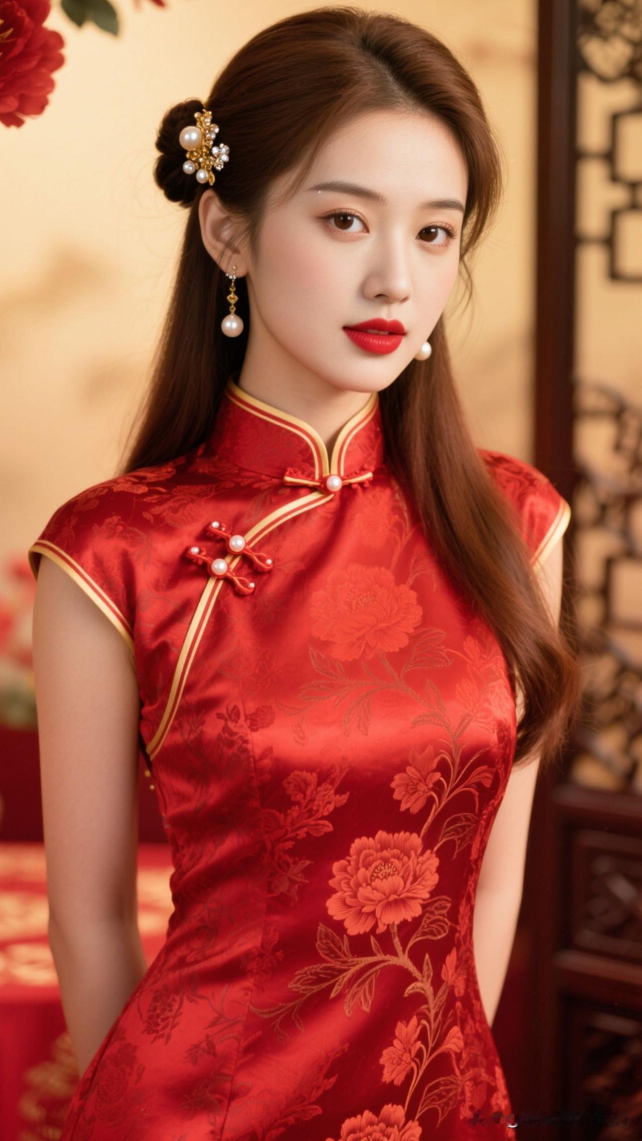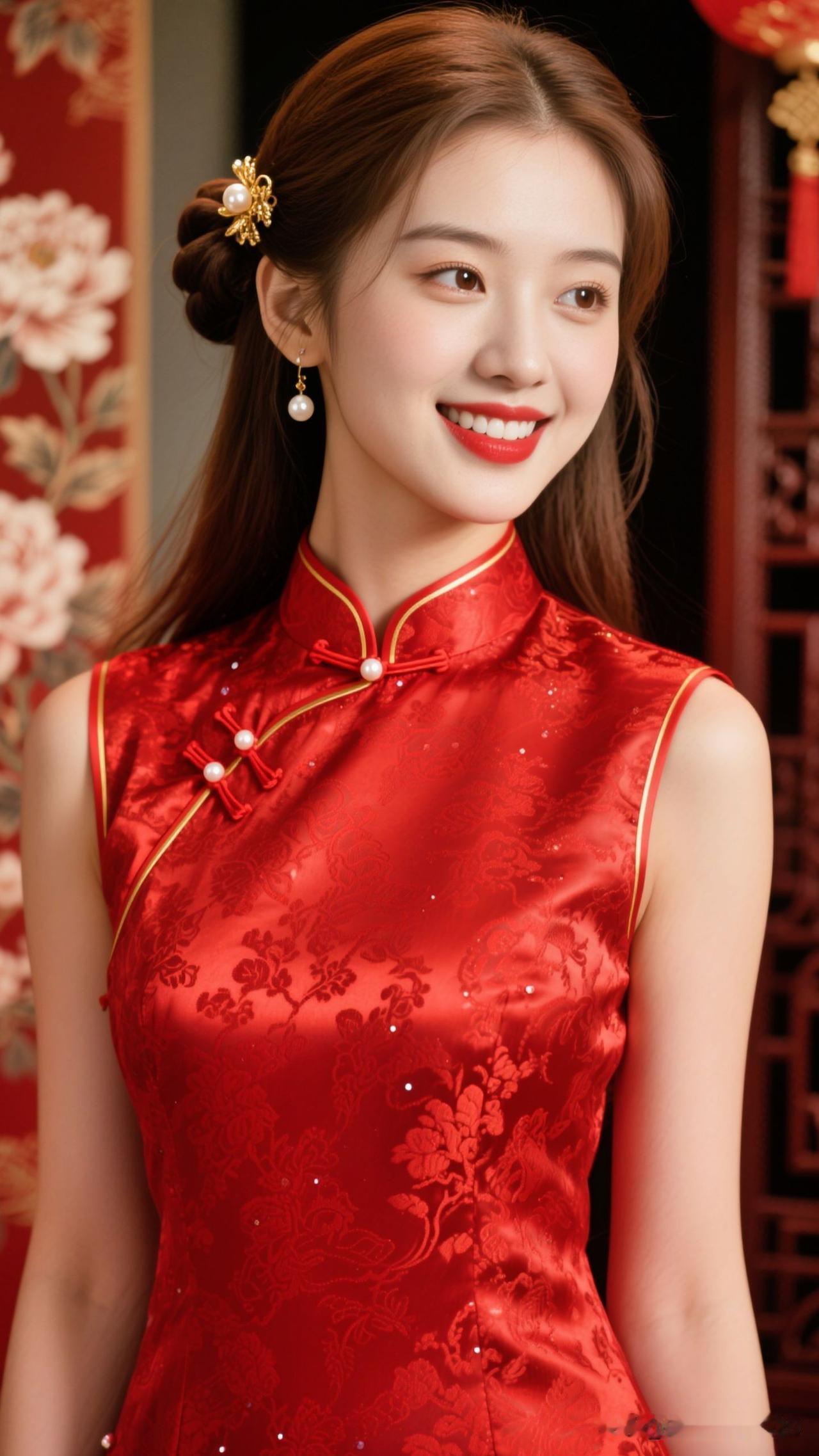 红衣美人倚石立,笑靥如花映日红。东方女性穿旗袍为什么这么美