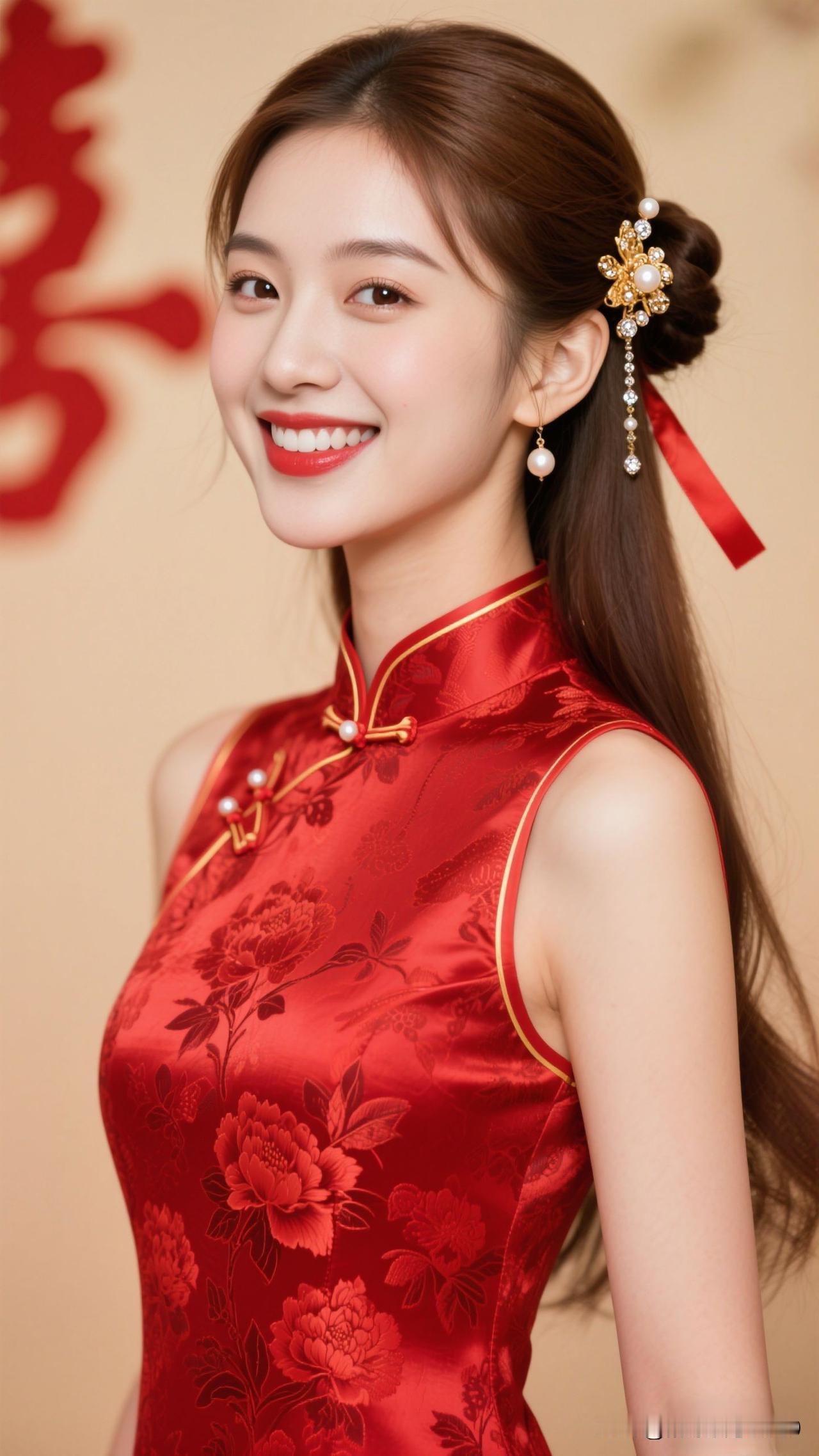 红衣美人笑,花影映春光。旗袍秀东方美人 古韵红衣女神 古典红裙佳人 旗袍古典美女