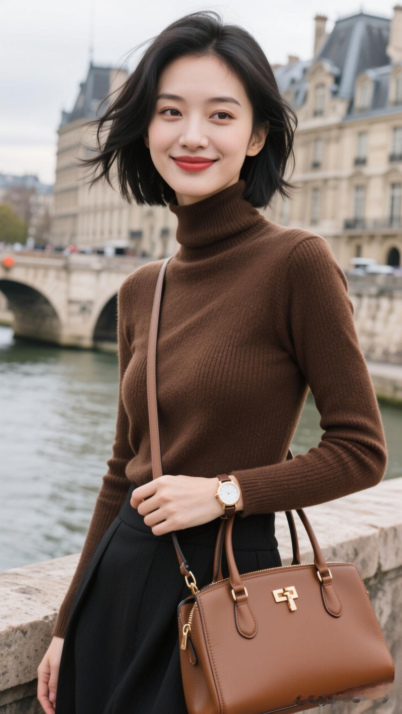 秋日穿搭指南:棕色高领毛衣搭配黑色裤子,优雅又时尚!甜美小仙女的穿搭时尚街头少