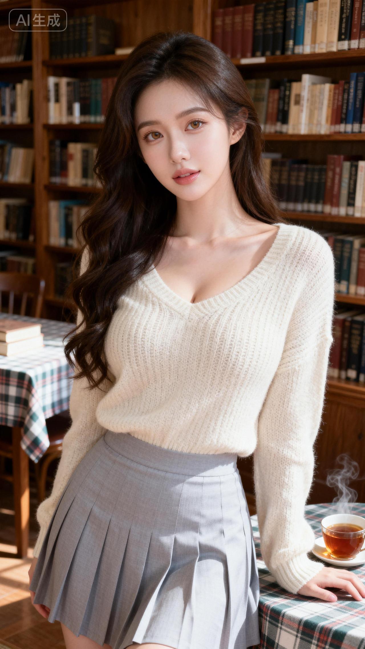 窗外交织着雪的絮语,她蜷缩于咖啡的热气里。时光在唇齿间留香,宁静沉淀为杯中的甜。