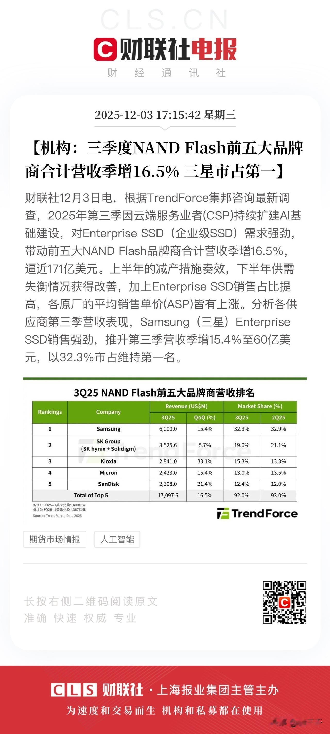 存储扒了底裤漏了个干净! 三星、美光、海力士、铠侠、闪迪5家公司垄断了NAND Flash超90%的市场份额。 这也是为什么高端存储补库存六个季度, 但是A股存储补库存只要2个季度, 产品层次完全不一样的! 这也注定了德明利、江波龙、香浓芯创、雅克科技、东芯股份没有人能有底气拿住, 都是一波流偷塔, 吃到了满嘴流油, 没吃到愁白少年头! A股存储芯片核心技术三家公司: 兆易创新、澜起科技、长鑫存储。 A股当下的牛市每个板块的效率都非常高, 少部分入道者是赚的盆满钵满的, 反而美股这种长久慢牛超额收益很难! 现在的A股就相当于1970-1980的美股, 波动大风险偏好高, 有超额收益也有超额亏损。 …