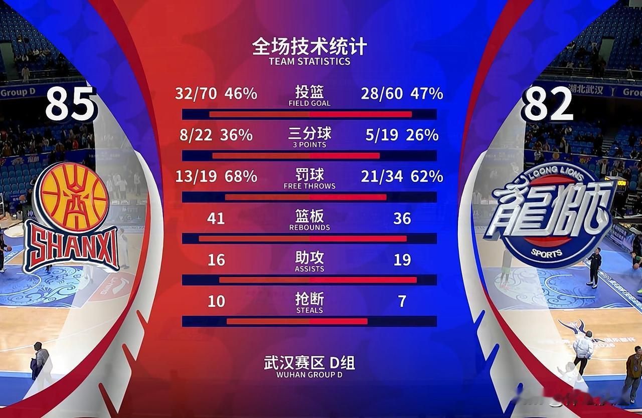 CBA俱乐部杯小组赛山西汾酒险胜广州朗肽海本拿到首胜。上半场山西汾酒发挥出色,掌握比赛节奏,以52:44占先。下半场广州朗肽海本发挥不断缩小分差,将胜负悬疑保持到终场。全场比赛结束,山西汾酒笑到最后,以85:82险胜对手,拿下小组赛首场胜利。