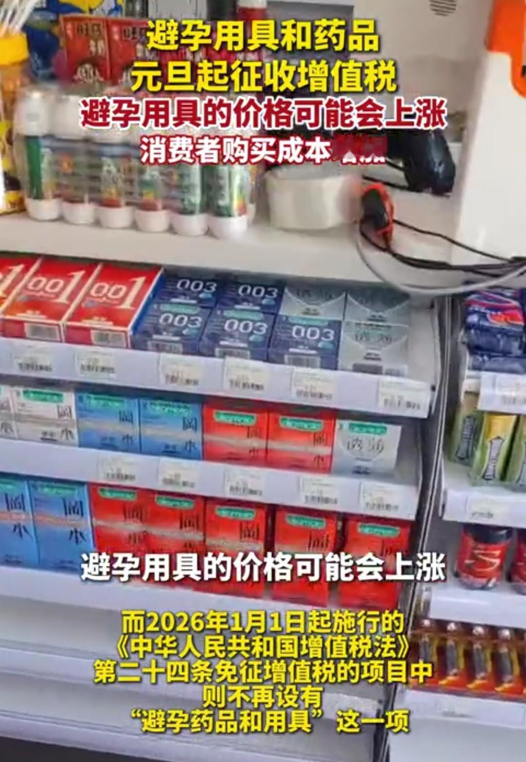 从一月一号起,避孕用具和药品要征收增值税,不再享受免征政策。 受该政策的影响,消费者购买成本可能会增加。 为了增加生育率,真的是拼了,各种各样的政策,就为了生育率。 但是,想问一下,这会有用吗?就像人家说的那样,想生的,不用催也会生,不想生的,不管怎么催都不会生。