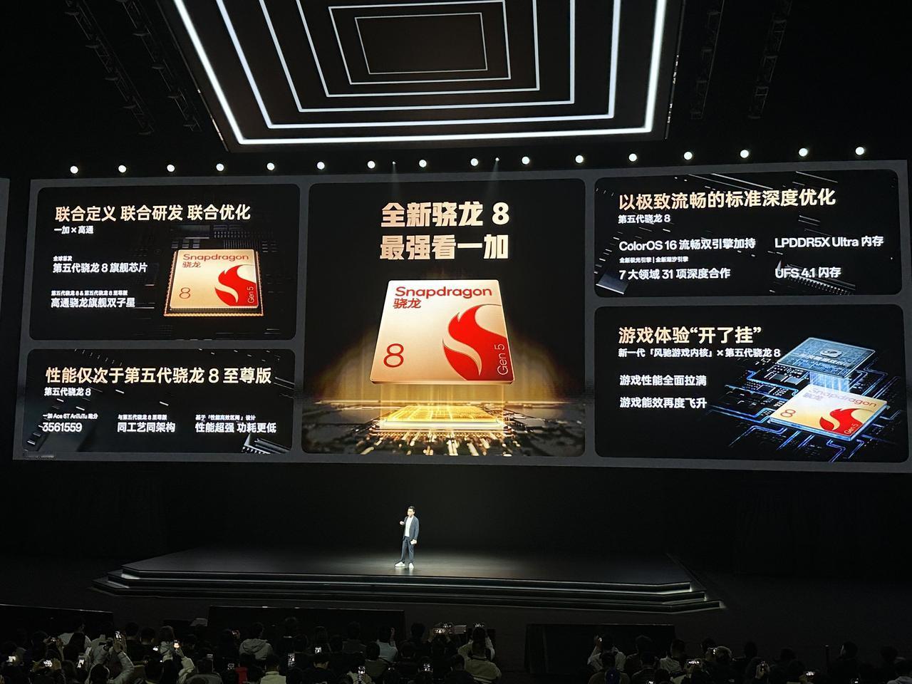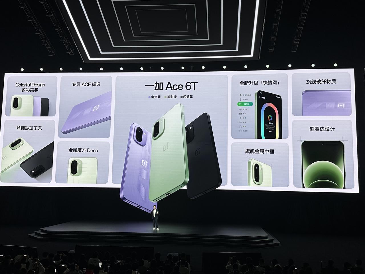 一加手机今年1-11月销量同比增长42.3%,行业增速第一。李杰:预计一加15将成为品牌近几年最畅销的机型 一加Ace 6T首发第五代骁龙8旗舰处理器,支持165Hz超高刷新率游戏体验,外观设计延续家族式设计语言,金属中框,金属deco,超窄边屏幕,主打简约风格 一加与高通联合研发和优化骁龙8 Gen5,底层写入风驰有游戏内核,安兔兔跑分超356万,LPDDR5X Ultra内存+UFS4.1闪存,还有电竞三芯片 首发《和平精英》原生165hz高刷新率模式,通过赛事环境认证。 一加Ace6T 一加Ace6T新品发布