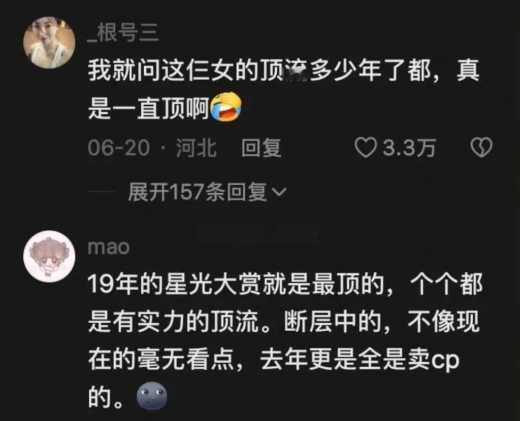 星光大赏真的一年不如一年,应该没人不怀念2019年的吧?始终觉得那一批才是真正的星光,群星璀璨本来以为是标配,没想到是顶配了,迪丽热巴和杨幂携手同台,肖战王一博杨洋赵丽颖随后登台,歌还是鹿晗唱的,感觉完全就是世纪大同框。