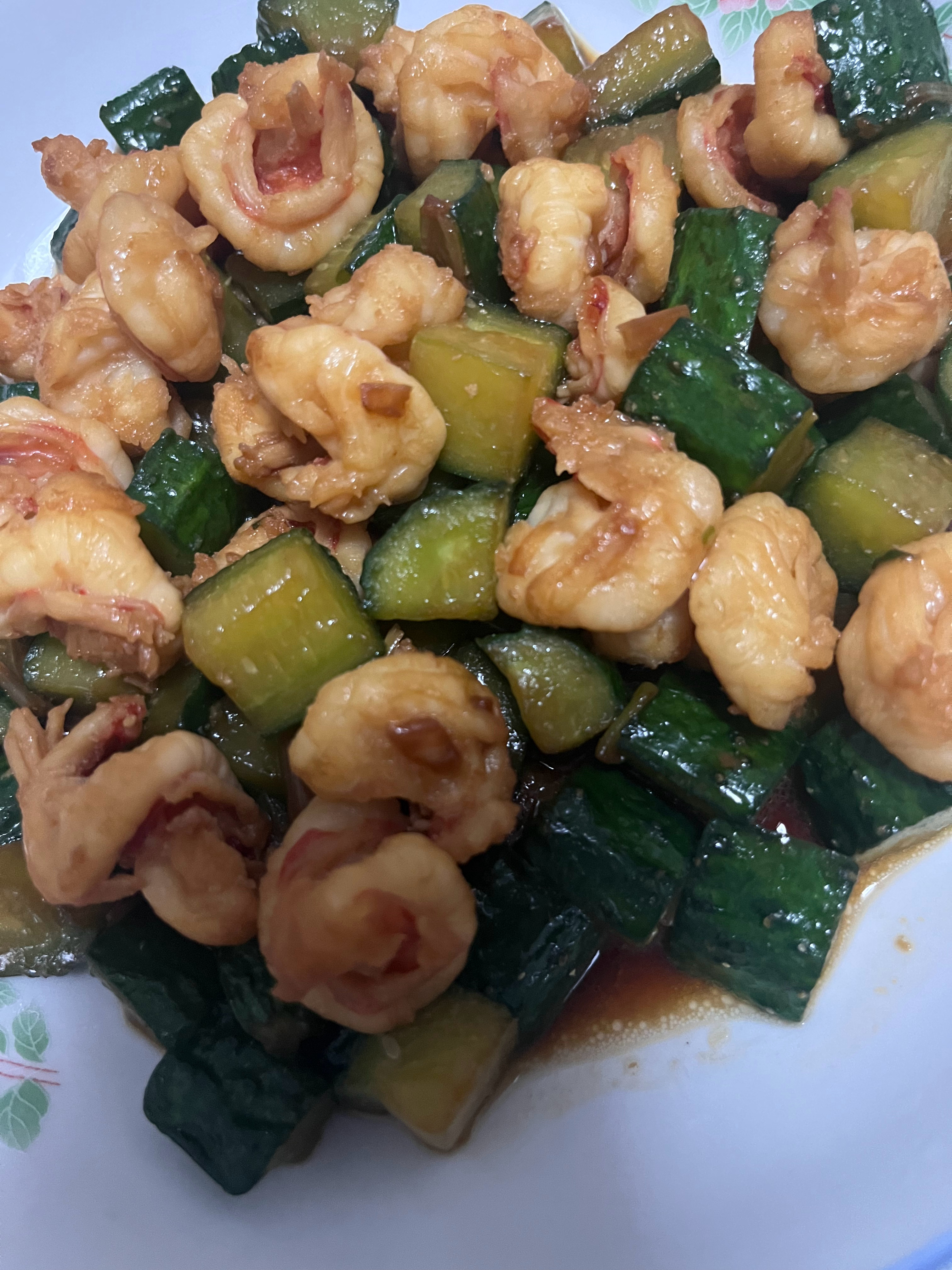 黄瓜炒虾仁有菜有蛋白,晚上啥也不吃了,就单独吃这个,少长点肉吧~