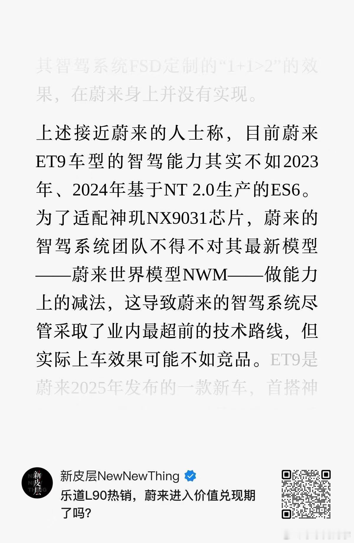 蔚来智驾产品,一直落地有点温吞,就给了这些言论滋生的温床。这些言论也非常可笑,新的神玑芯片nx芯片,有着行业首屈一指的带宽和算力,怎么可能需要去做模型减法?唉,争点气吧,蔚来的智驾,别给这些言论滋生的机会。不管蔚来是不是逆风局,反正蔚来蔚来是绝对的逆风局。水哥有话说