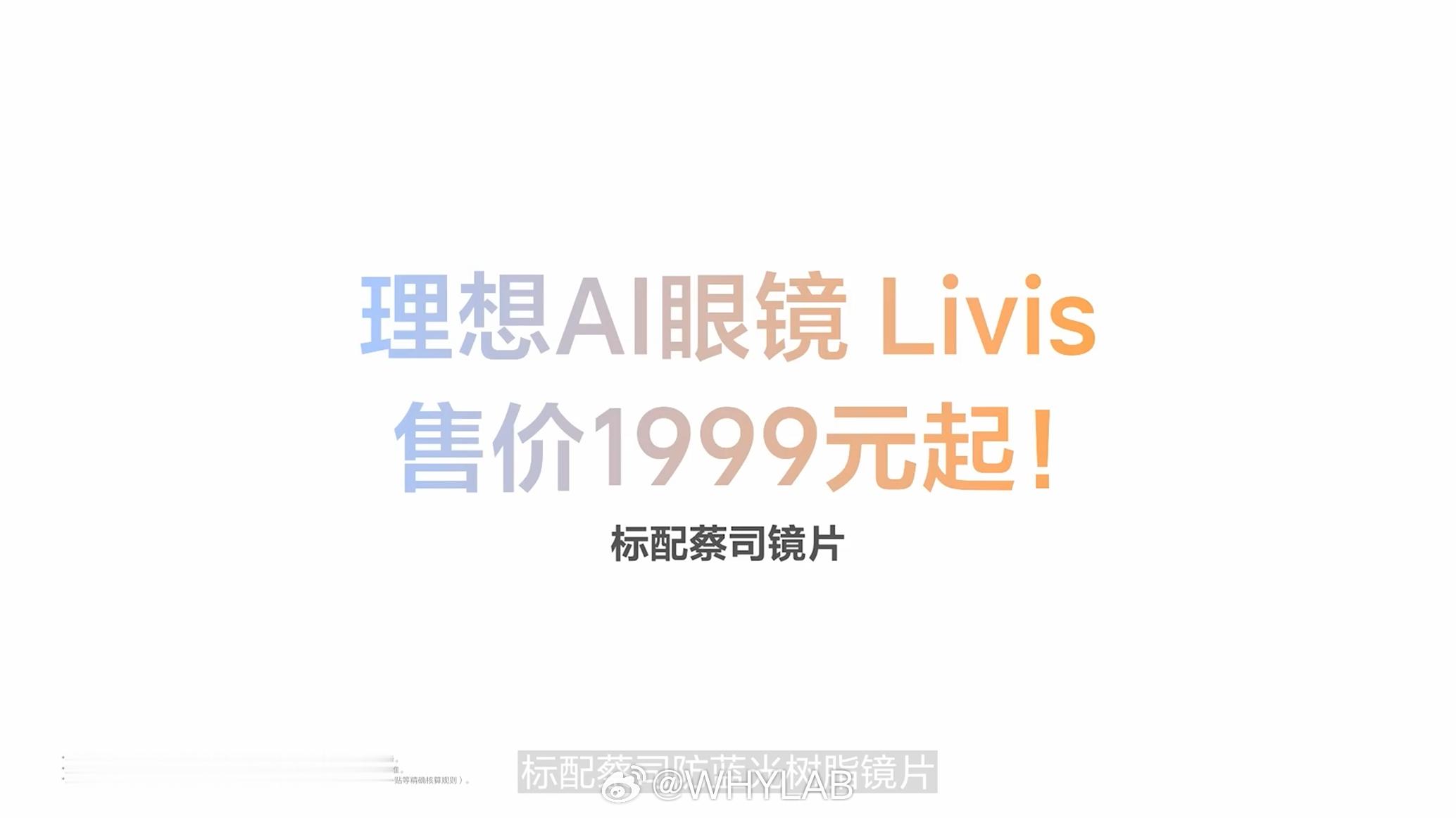 理想 AI 眼镜发布,售价 1999 元起,还有国补,重量 36 克,常用续航 18 个小时,待机续航 78 小时,支持空调控制、后备厢控制、车窗控制、冰箱控制等等,标配蔡司镜片,感觉还行呀,这个价格。