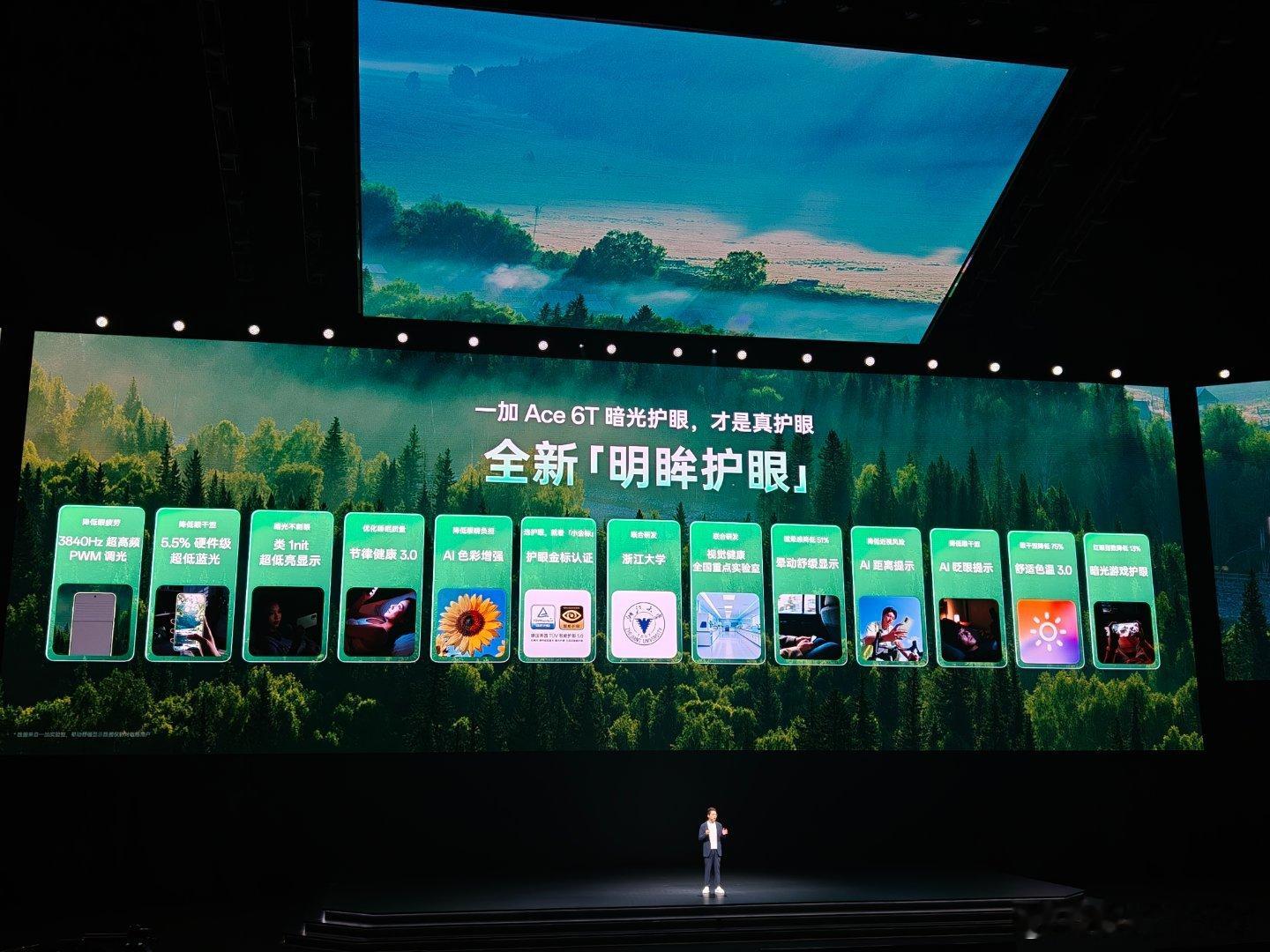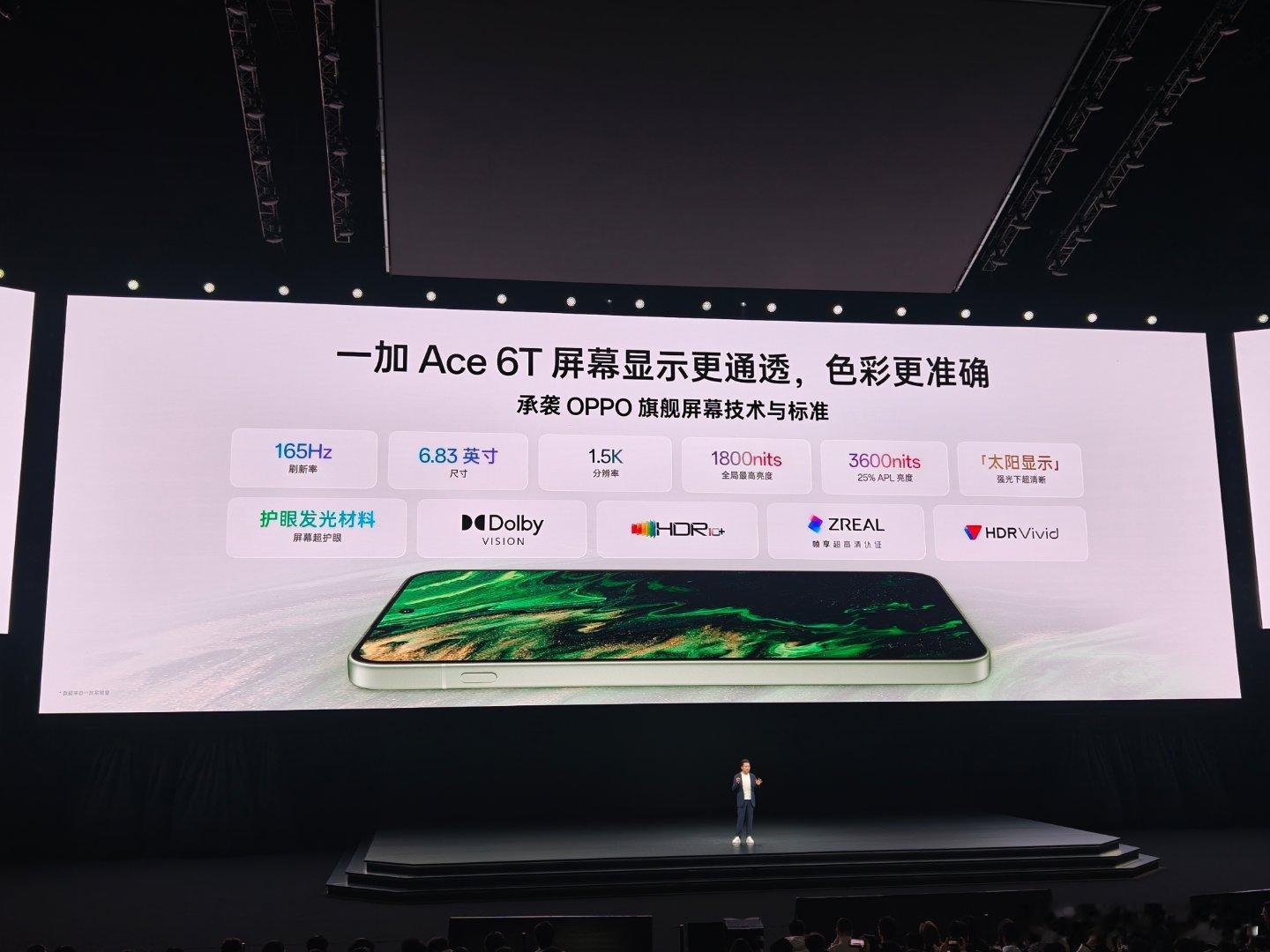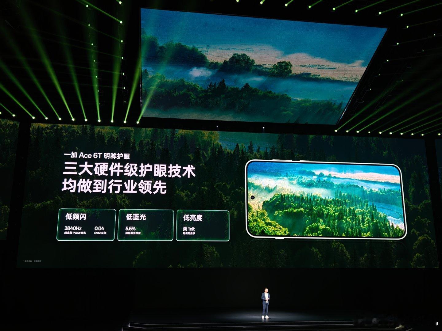 一加Ace6T 搭载一块6.83英寸165Hz 超高刷电竞屏,参照一加旗舰标准定制而成,拥有165Hz极速高刷的同时,显示通透、色彩准确。屏幕采用全新一代医显共研「明眸护眼」,支持3840Hz 超高频 PWM 调光,实现硬件级低蓝光、低频闪与低亮度显示,已通过行业严苛的莱茵护眼5.0“小金标”认证,全场景呵护用眼健康。此外,该机还配备了旗舰超声波指纹,解锁迅速且支持湿手操作。影像方面,一加 Ace 6T搭载支持IOS光学防抖的5000 万像素的索尼 IMX906大底旗舰主摄,与旗舰同款的“超清画质算法”、“超光影图像算法”与“人像引擎”,以及无影抓拍、超清实况照片、AI 人像补光、AI 消除等超丰富的旗舰影像功能,共同构成一加Ace 6T的超光影旗舰影像系统,实现“拍人拍景都精彩”的强悍影像实力。一加Ace6T新品发布你用过165Hz手机打游戏吗