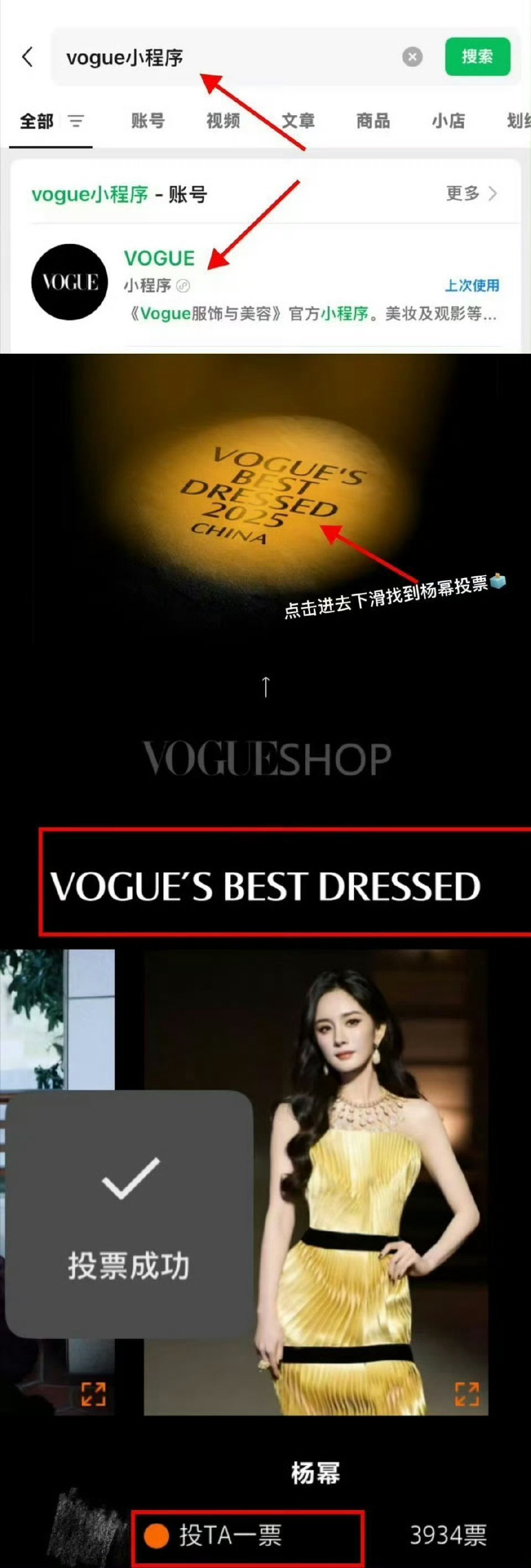 杨幂 vogue投票🗳️今天有没有没投的,一个wx耗一天5票🎫、可以切耗投!教程如图1,下家追很紧,投完了抠1️⃣