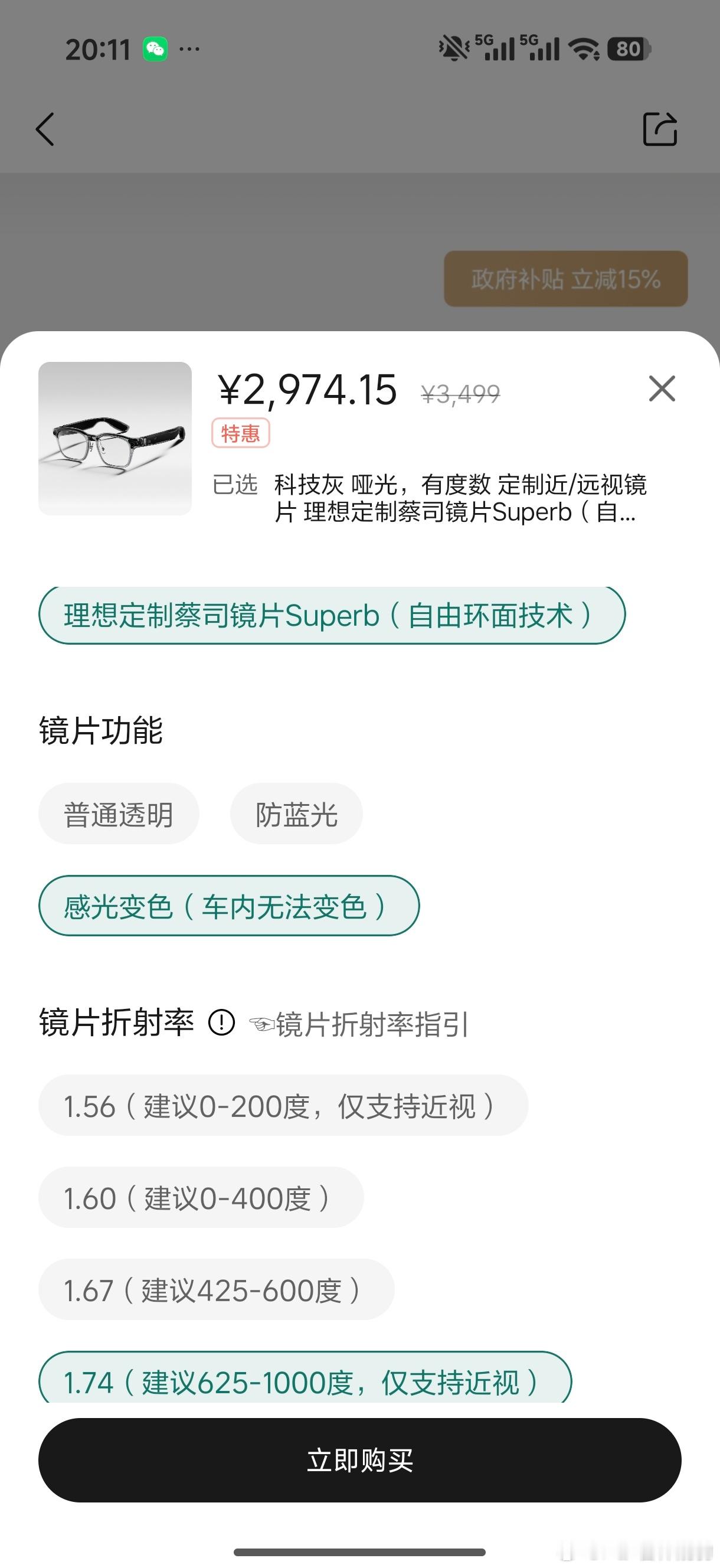 理想AI眼镜Livis理想同学+墨镜+近视镜+耳机,不到3000块是不是超值?配蔡司镜片折射率1.74防蓝光的,配镜店要1499,京东只是镜片价格1000+