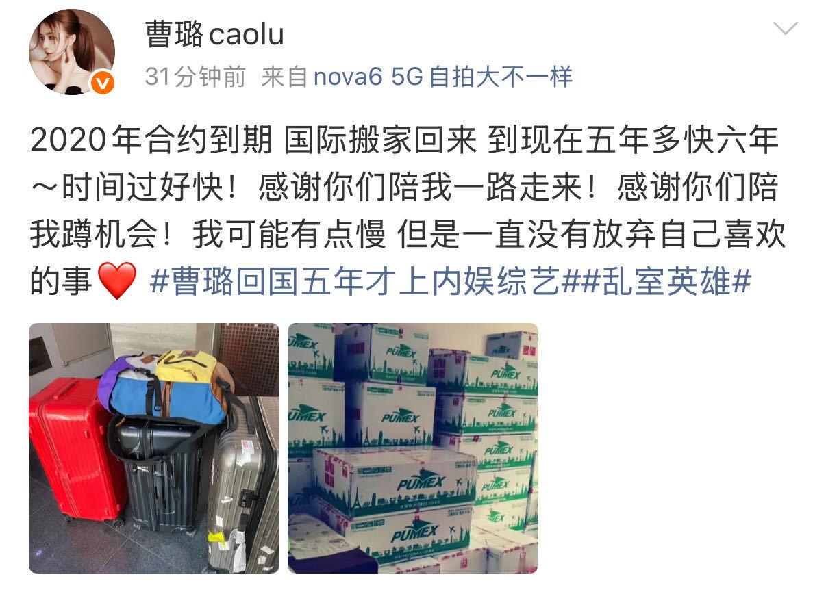 曹璐回国五年才上内娱综艺曹璐爱豆退役回国 终于有机会上内娱的综艺了