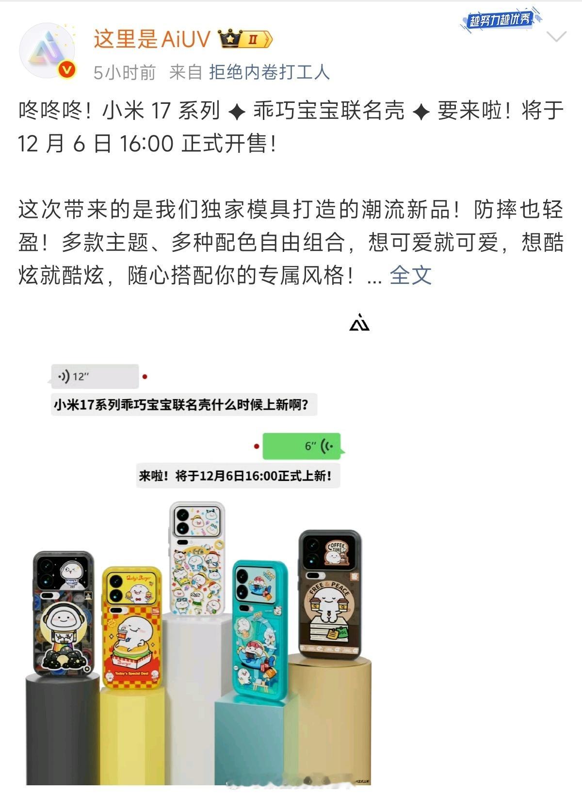 【抽一份新品手机壳】感觉哎哟喂的壳子又升级工艺了?边框略高于屏幕,手感更好了。发文前看了一下某宝,Pro Max的壳子又卖光了(Pro的还有) ... 评论区给大家抽一份岚青(图五图六那款,适用于Xiaomi 17 Pro Max),而我 ... 继续期待一手乖巧宝宝的联名款。 抽奖详情