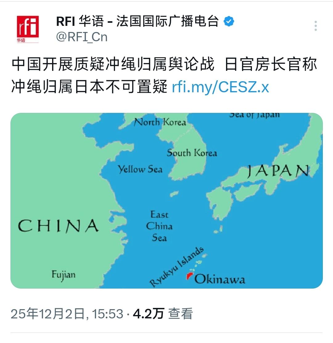 法国国际广播电台12月2日报道:“中国开展质疑冲绳归属舆论战 ,日官房长官称冲绳归属日本不可置疑。日本内阁官房长官木原稔在12月1日的记者会上,对于中国媒体接连发表质疑‘冲绳是否属于日本’的文章一事表示,‘没有必要对中国的报道发表评论,因为在冲绳是我国领土这一点上不可置疑。’” 这番言论,简直是荒谬至极、自欺欺人! 冲绳这地儿1879年之前,人家叫琉球王国,国王每年给大清朝贡,宫里摆着康熙皇帝赐的“中山世土”金匾。那会儿日本还在九州岛琢磨怎么脱亚入欧呢,突然派兵把琉球国王掳到东京,宣布“废藩置县”改成冲绳。 这事搁现在就是赤裸裸的侵略,搁当时清朝李鸿章都急了:“琉球虽小,也是独立之国,你们说占就占?” 结果呢?甲午海战清朝输了,琉球就这么被生吞了——但注意,直到清朝灭亡,中国从来没签过承认琉球属于日本的条约。 二战后更热闹。1945年《波茨坦公告》白纸黑字写着,日本主权只能留本州、北海道、九州、四国四个岛,其他地儿都是“吾人所决定”——这“吾人”包括中国啊! 美国那会儿管着琉球,1951年签《旧金山和约》,压根没叫中国参加,自己揣着琉球当托管地。 到了1971年,尼克松跟佐藤荣作一合计,直接把琉球行政权“还”给日本,连主权俩字都不敢提。美国国务院后来自己承认:“我们移交的是钥匙,不是房产证。”现在日本拿着这把钥匙,非说房子是自己的,您说滑稽不? 最逗的是日本的法理逻辑。他们总说“长期实际控制”,可冲绳人答应了吗?去年琉球大学做民调,63%的当地人觉得自己是“琉球人”,只有28%自认“日本人”。 满大街的琉球语路标,美军基地占了冲绳20%的土地,当地人抗议了半个世纪——这要是“固有领土”,日本政府至于每年给冲绳塞3000亿日元安抚费?去年那霸市议会通过决议,要求美军普天间基地搬迁,东京政府连理都不理,这叫“不可置疑”? 再说木原稔这位老兄,早稻田大学国文系毕业,按理说该懂点历史。琉球王国的《中山世鉴》里明明白白写着,钓鱼岛是中国领土,跟琉球八竿子打不着。 现在日本拿“琉球属于日本”论证钓鱼岛主权,就像小偷先偷了邻居的自行车,然后说自行车筐里的钱包也是自己的——逻辑感人。 更绝的是,2013年《人民日报》发文章提“琉球再议”,日本外务省急得跳脚,结果一查史料,当年吞并琉球的文件里,连个“主权转移”的公章都没有,全靠军队刺刀说话。 有人说中国提琉球是“打嘴炮”,可您看现实:去年中国海警船在琉球群岛附近巡航230天,空军绕岛飞行47次。冲绳当地的琉球民族独立研究会,现在开会都敢挂“琉球复国”的旗子——这可不是咱们煽动的,是日本自己造的孽。 去年中国在联大提交《琉球群岛历史与现状》报告,127个国家联署支持——日本常驻联合国代表当场脸都绿了。您说,一个连联合国托管协议都没走完的地方,哪来的“固有领土”? 说白了,日本死咬冲绳,一是怕丢了面子,二是美军基地的战略价值。但历史账早晚要算:1879年的武力吞并,1971年的私相授受,2025年的掩耳盗铃——这出戏演了146年,该落幕了。 木原稔们与其忙着否认历史,不如学学冲绳那霸博物馆的标语:“我们不是日本人的冲绳,我们是琉球人的琉球。”这话,够某些人喝一壶的。