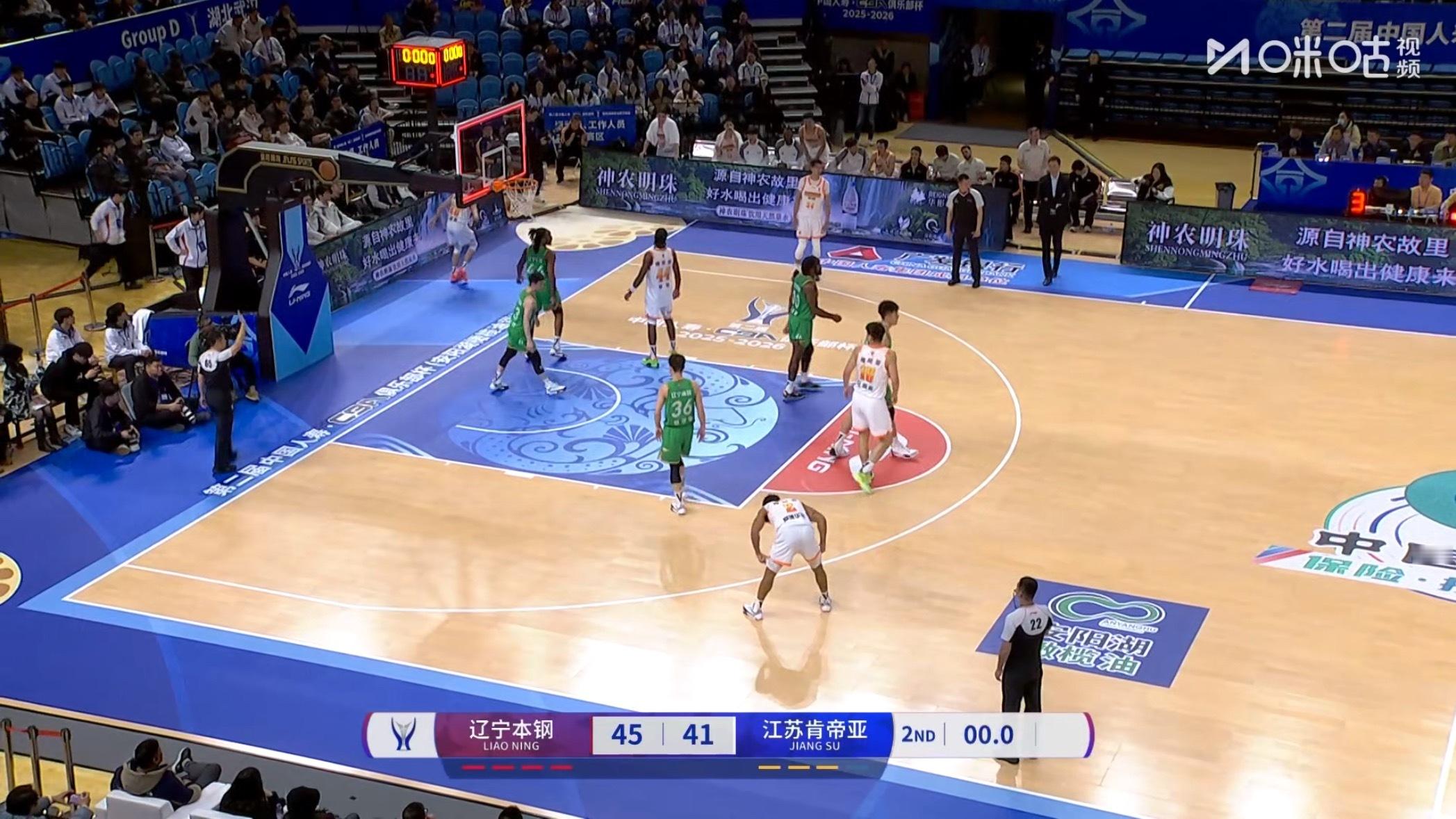 CBA杯赛辽宁对江苏半场比赛结束辽宁队暂时领先4分辽宁男篮