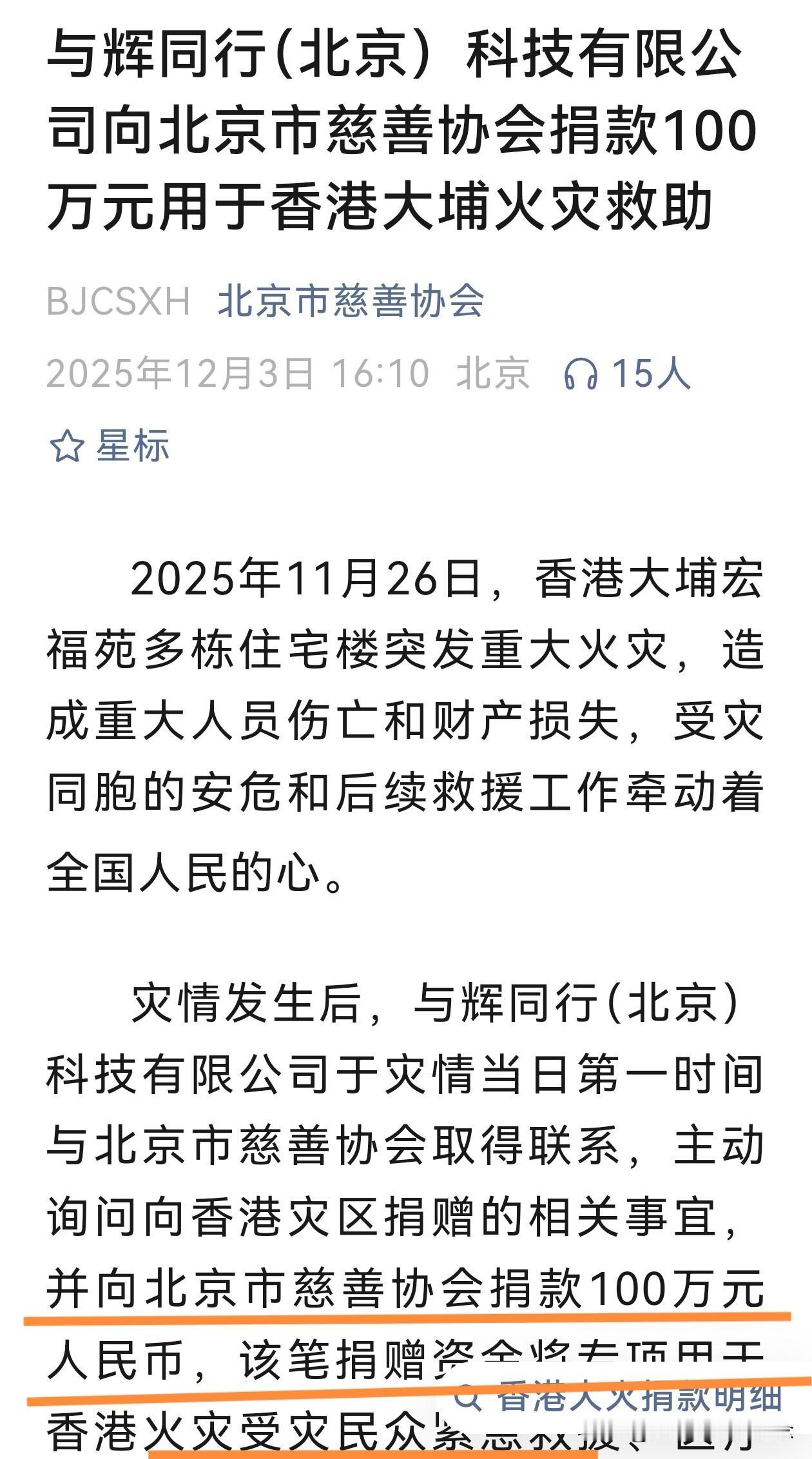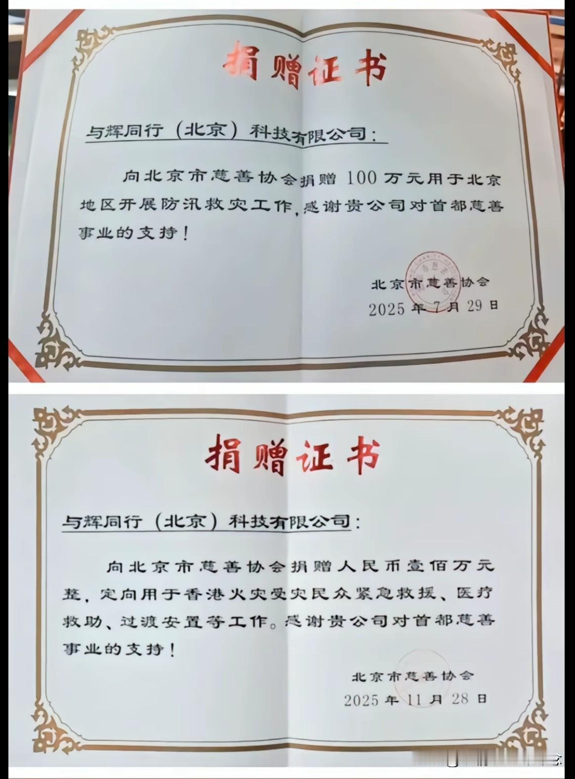 真的越来越不理解董宇辉了, 为什么嘴这么严, 要不是北京慈善协会官方号发文,我们都不知道,“与辉同行”不仅向香港大埔火灾捐款100万元,还在今年7月北京暴雨灾害时,也捐了100万元。 他从不愿张扬善举,却让善意在无声处开出了最暖的花;他从不用热搜证明自己,却让大家无条件信任他。 有人说他是“流量玄学”,有人质疑他立“文化人设”,他从不为自己辩解,就像他自己所说:“我们衷心的祝愿,在人生的某个阶段,有人曾经真正的懂过你,知你的难,理解你的苦,然后钦佩你的勇气,认同你的智慧。”也许,这就是人与人之间最珍贵的东西。 但我想对宇辉说:别在意那些无端的揣测和刺耳的杂音,也别为了不被理解而暗自内耗。你曾说“此心光明,亦复何言”,那些藏在善举里的温柔、融在谈吐里的真诚,早已刻进懂你的人心里。你只管向前,走向山巅! 董宇辉 与辉同行