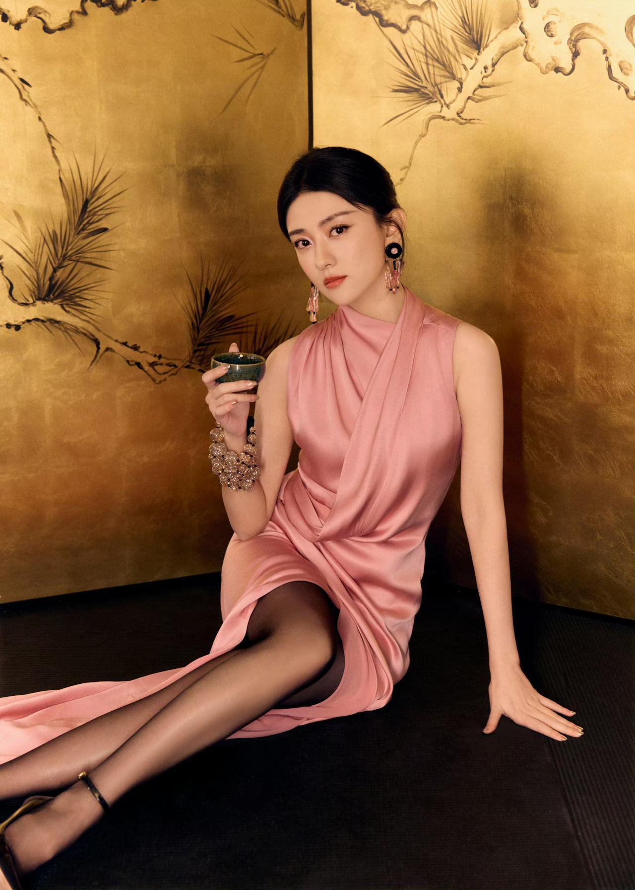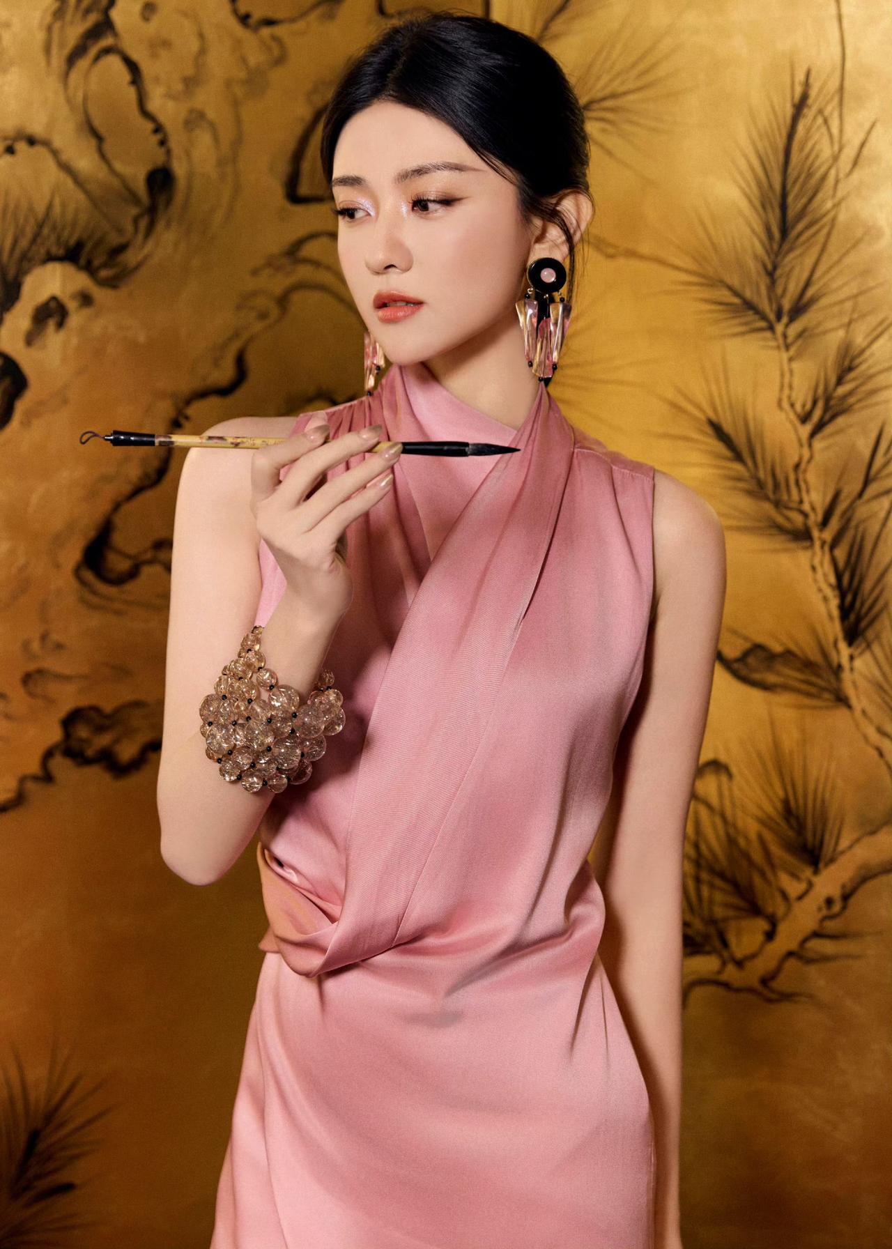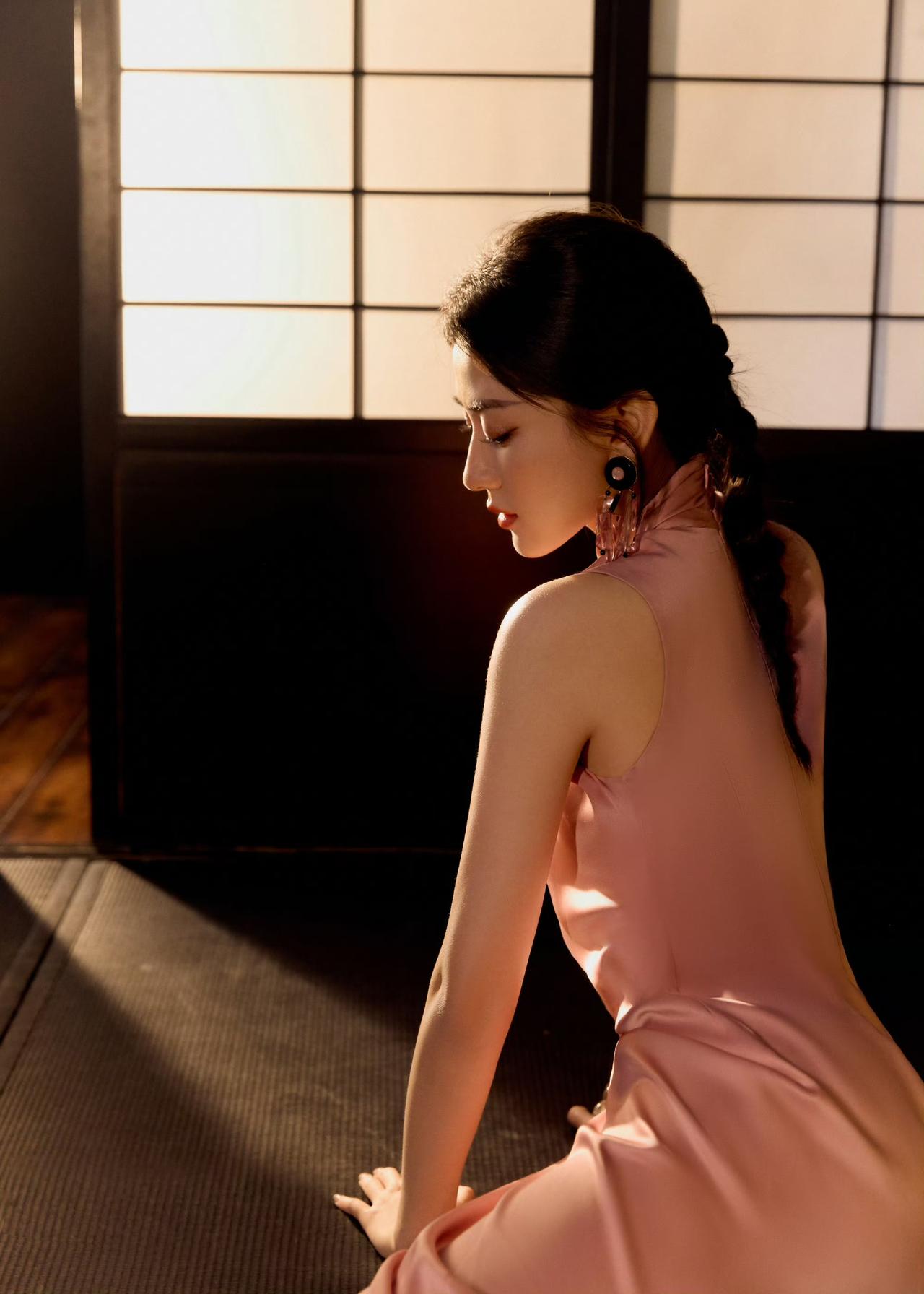 优雅东方韵味,粉裙与古风屏风的完美融合梁洁!!!