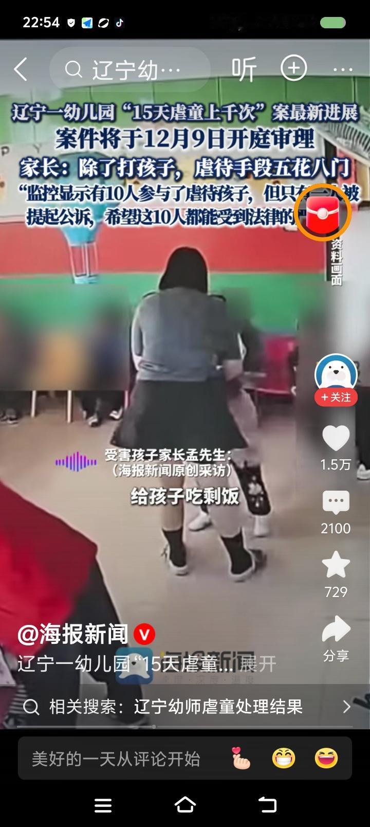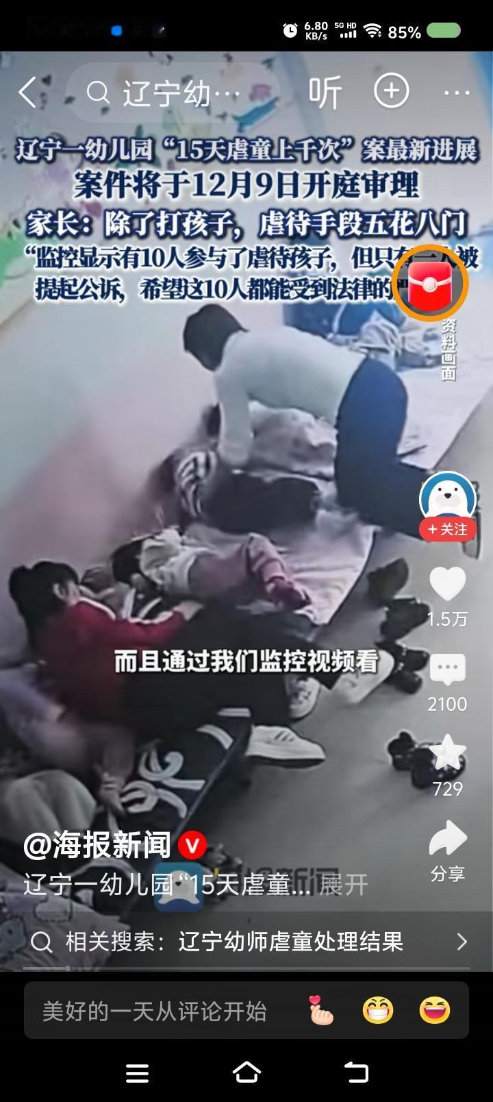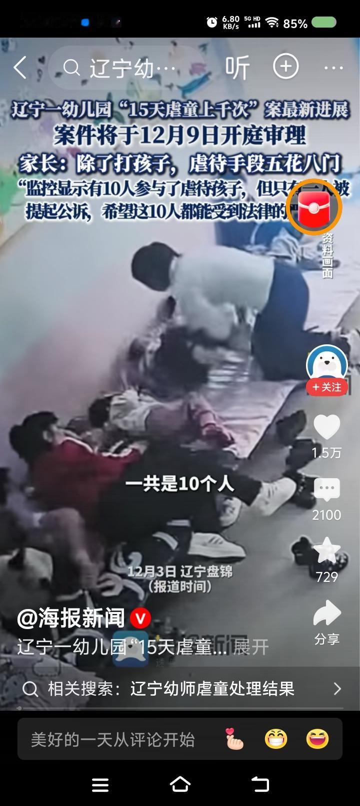 10名幼师虐童?—— 据报道,某幼儿园10名幼师有虐童行为,仅1人被公诉,家长要求10人都受法律严惩。虐童行为五花五门,包括打、被子捂、让吃剩饭…… 点评: 有几类案件是引起全民公愤的:家暴,虐童,强jian,诈骗。除了严惩一切违法者,还有两个问题: 一、该幼儿园有办学资质么?建议先调查园长和教育部门负责人!!! 二、“15天内虐童上千次”,为什么才被发现了?了解涉案幼师情形的同事是帮凶吗?孩子是任人宰割的羔羊吗?家长反应迟钝吗?中国教育到了如此地步?无论哪阶段,开学上学第一课都应该是《保护好自己》。