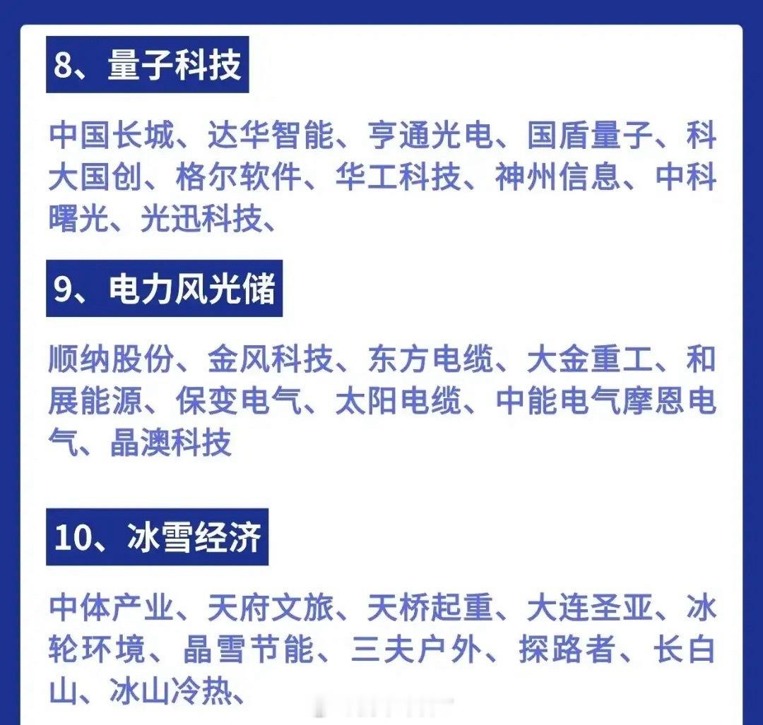 2025跨年十大热门赛道提前锁定!覆盖主题、科技、产业三大方向,相关概念龙头代表有哪些?AI算力:AI大模型持续迭代、算力基建政策加码,算力需求年增超50%。核心龙头代表有中科曙光、工业富联等。机器人:制造业自动化人形机器人商业化落地,关节/传感器等核心部件需求爆发,五洲新春、鸣志电器等布局产业链关键环节。海峡两岸:福建惠台新政+两岸融合项目落地(如跨海基建),闽东电力、平潭发展等享政策红利; 量子科技:量子通信/计算政策支持+商业化试点推进,国盾量子、中科曙光等攻坚前沿领域; 冰雪经济:冬季消费旺季叠加冰雪赛事催化,冰雪经济迎来年度高光时刻,行业龙头代表有三夫户外、长白山等等。理财有风险投资需谨慎,资料取材网络仅供参考