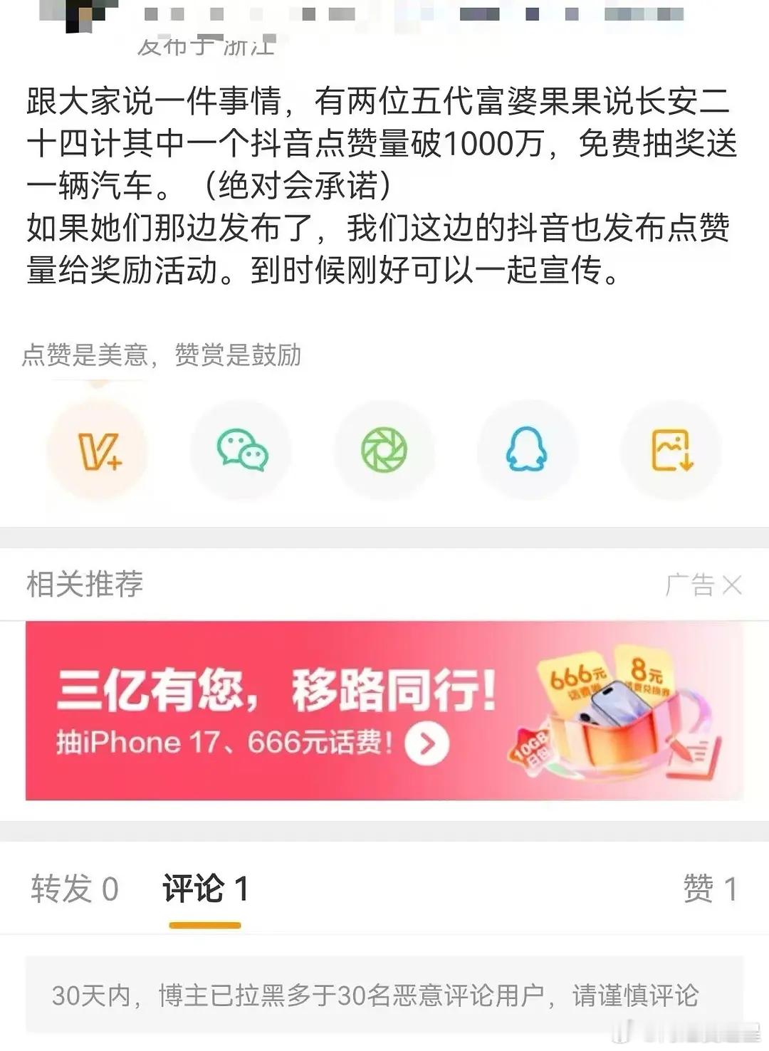 成毅的富婆粉丝说长安二十四计里只要有视频点赞量超过1000w就抽奖送一辆小汽车真,,豪啊