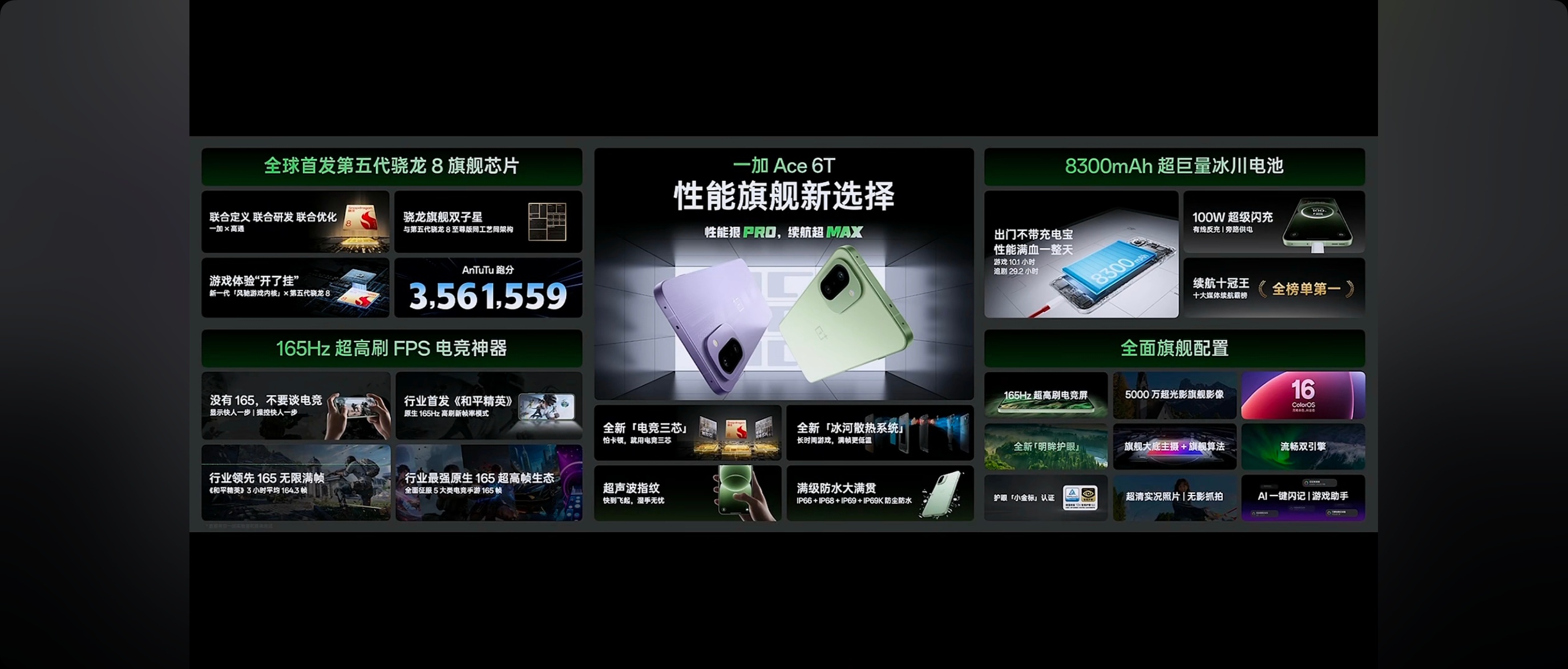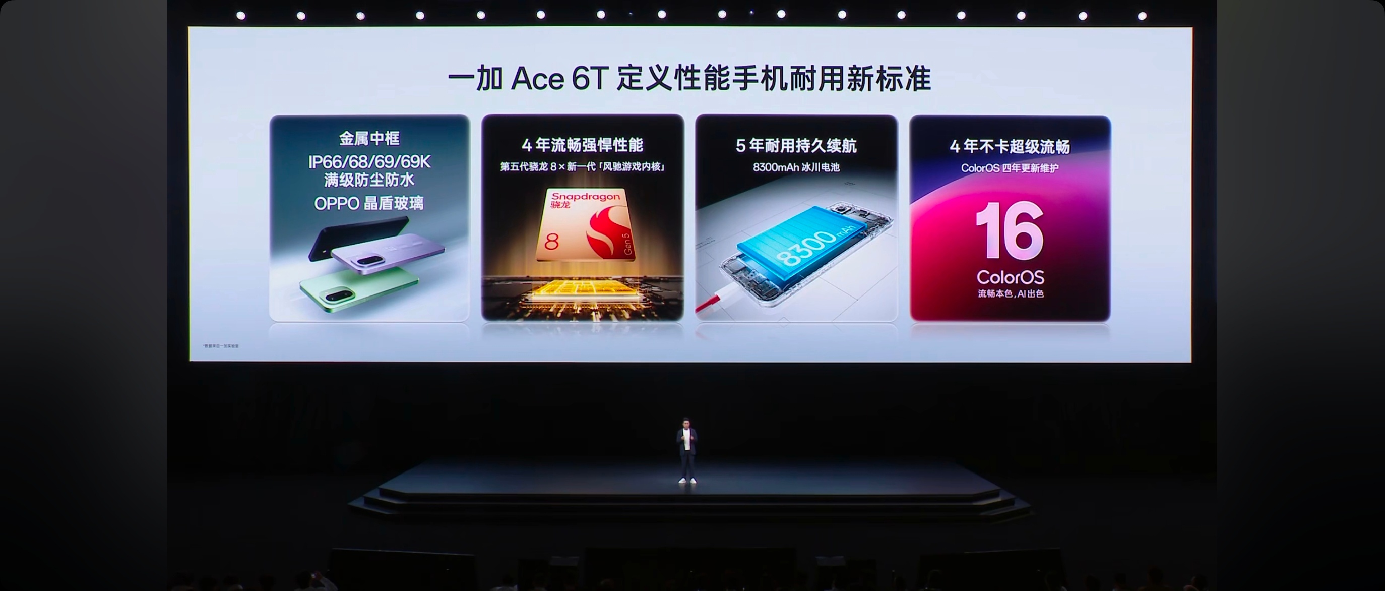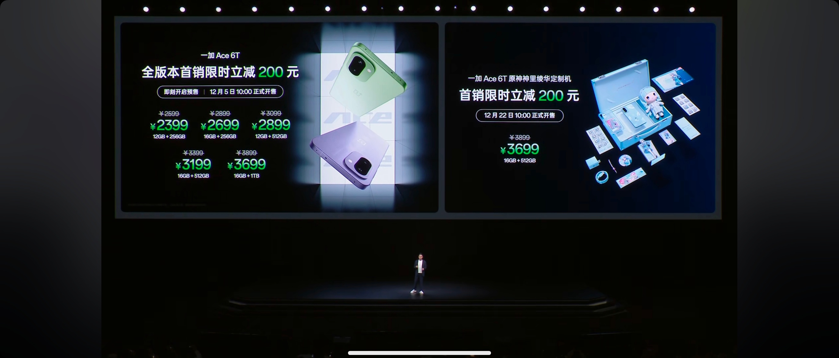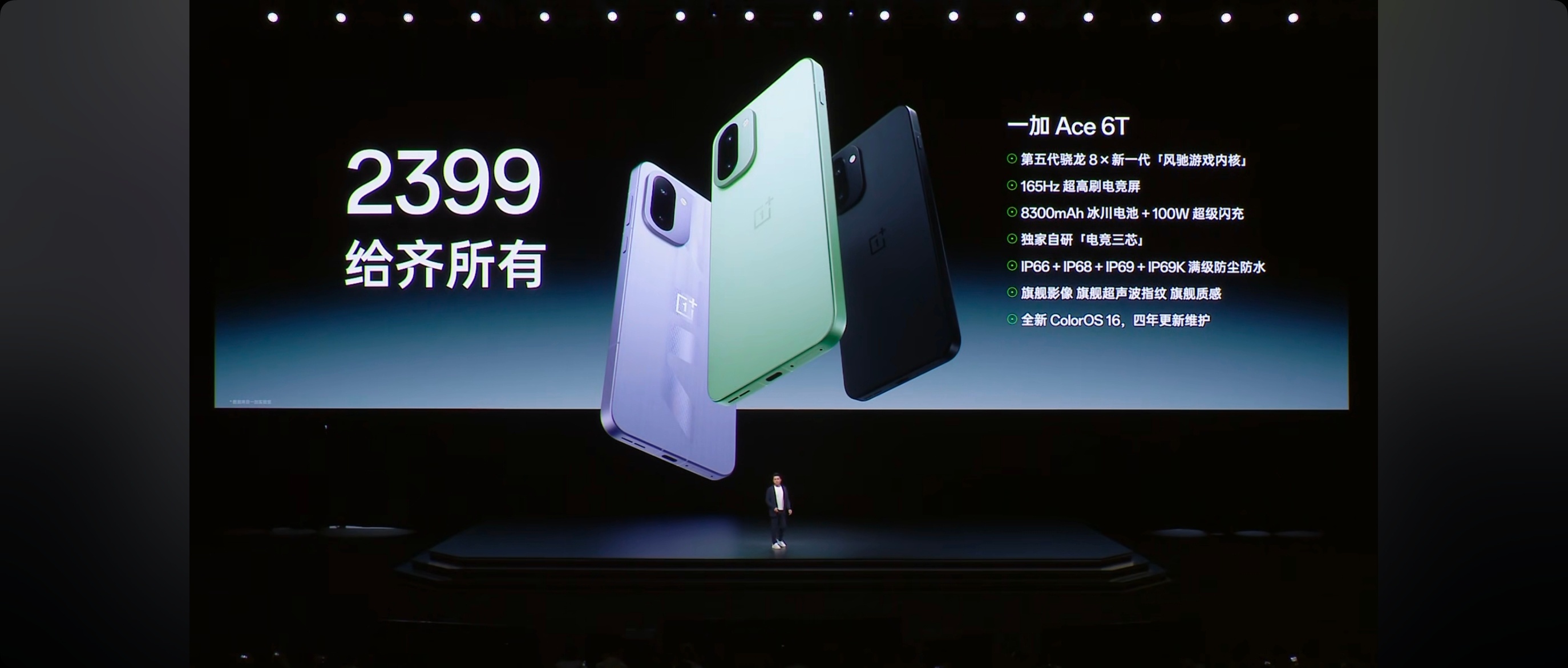【一加 Ace 6T正式发布,首销价2399元起】首发第五代骁龙 8 芯片,配备165Hz 高刷新率1.5K屏幕,内置8300mAh 冰川电池,支持 100W 有线闪充,并支持满级防水、3D超声波指纹识别等。一加 Ace 6T 原神神里绫华定制机定价:3699元