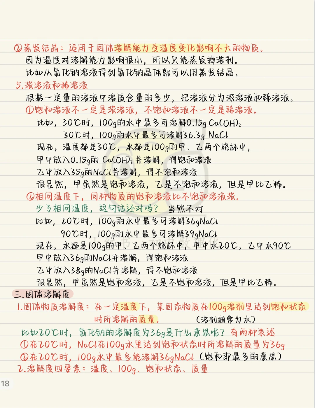 中考化学:最全溶解度笔记