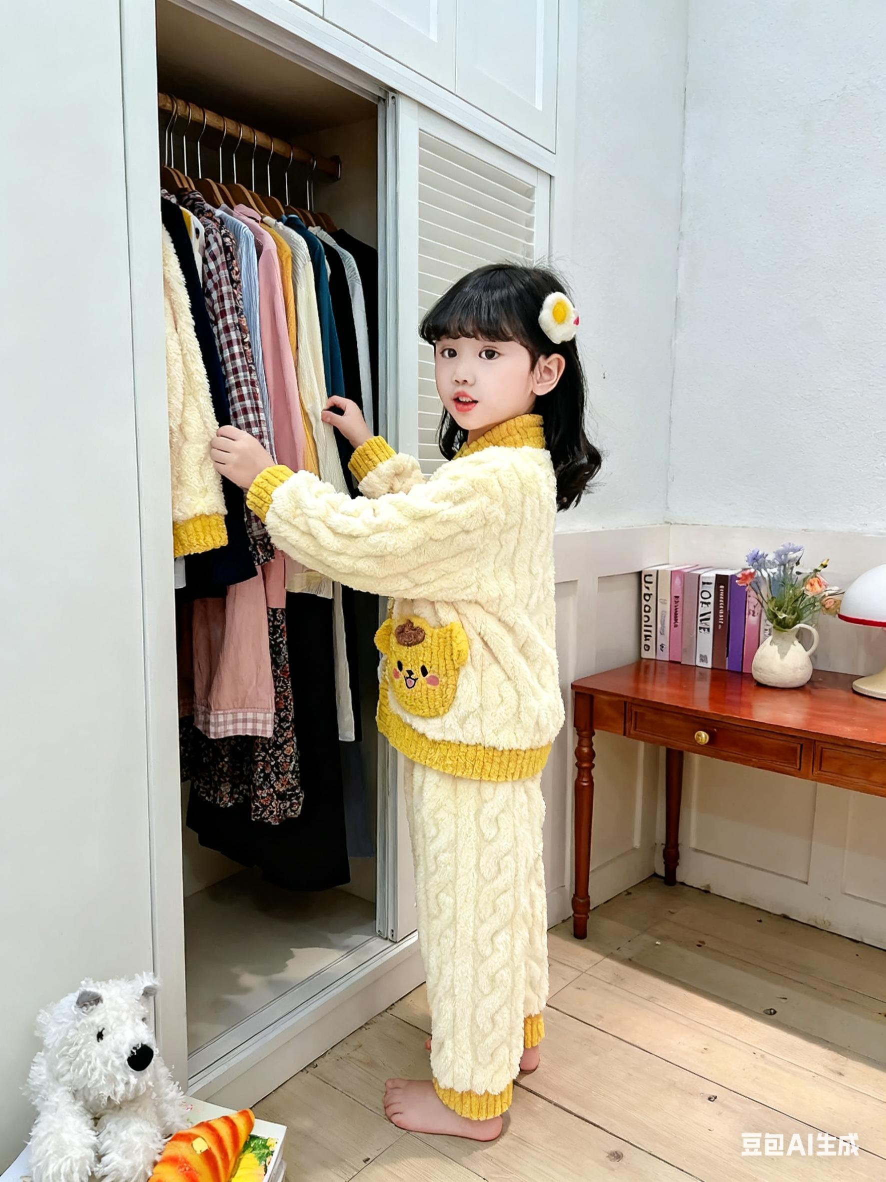 女童睡衣秋冬季2025新款法兰绒冬款女孩宝宝珊瑚绒儿童加绒家居服