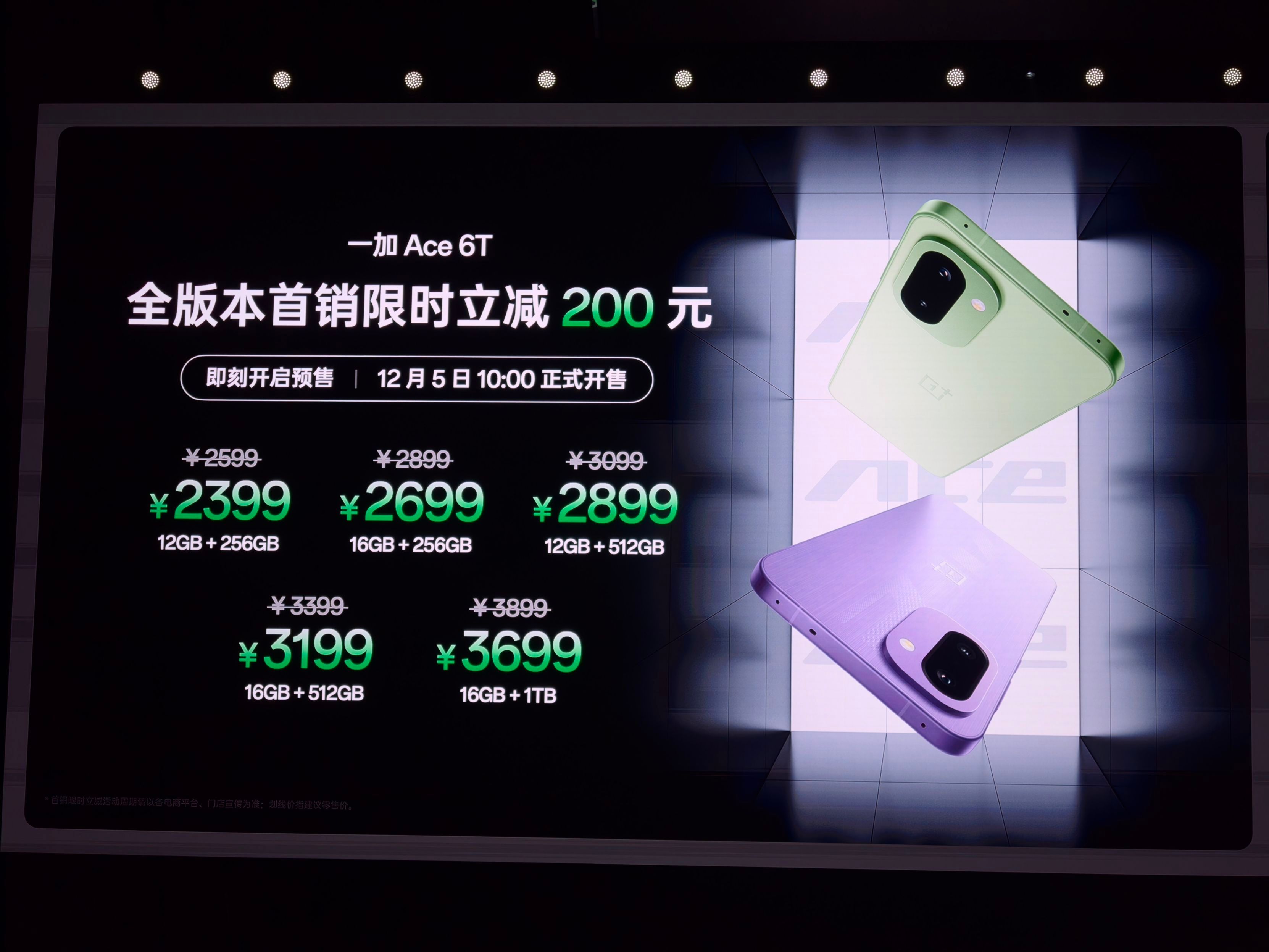 数码闲聊站 一加Ace 6T价格来了,2399元起!12+256GB 2399元起!16+256GB 2699元起!12+512GB 2899元起!16+512GB 3199元起!16+1TB 3699元起!这价格如何?