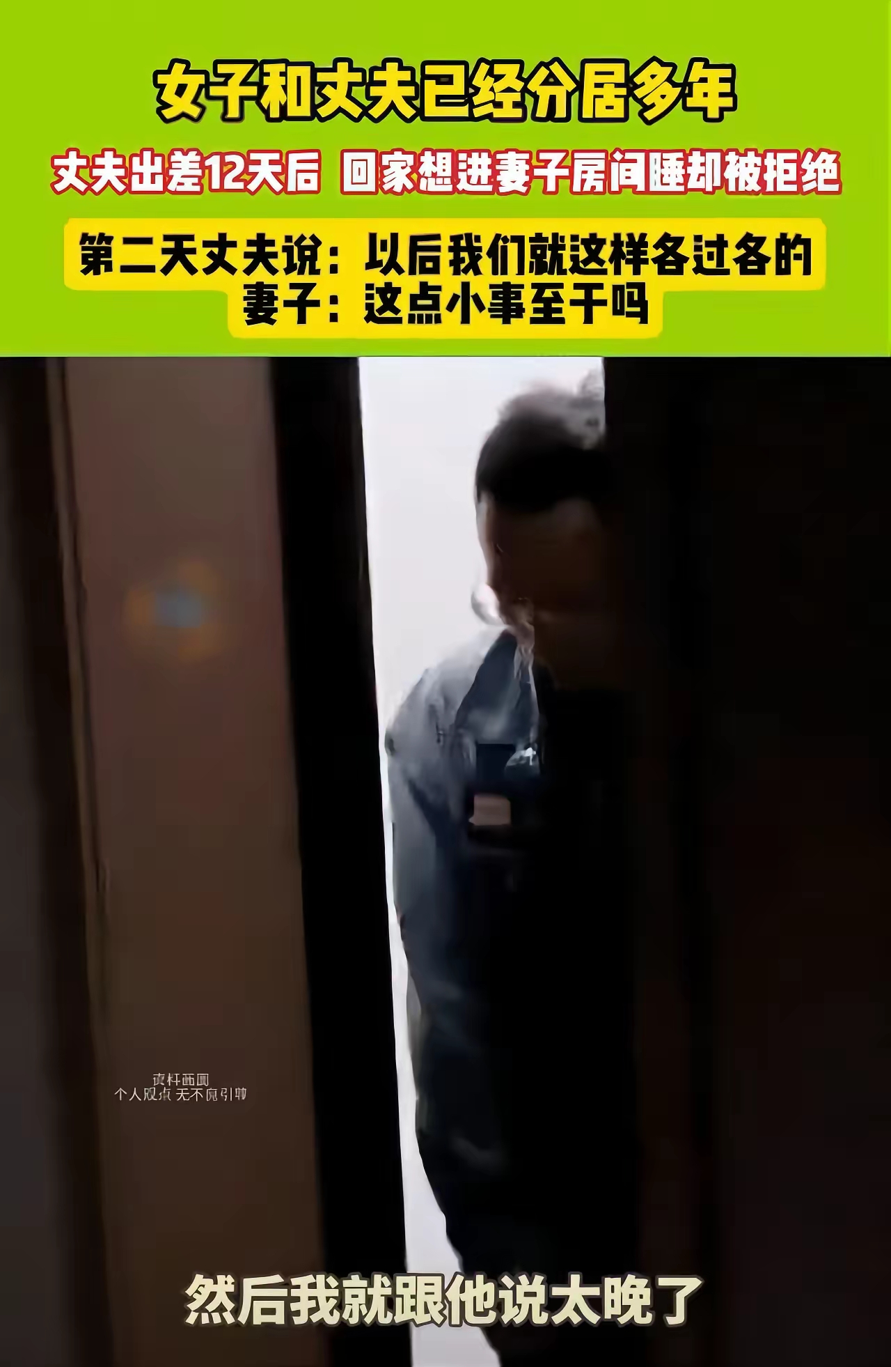 分房睡有错吗?”女子和丈夫一直分房睡,这次丈夫出差12天回来,想要跟她过“夫妻生活”,女子却以太晚为由拒绝了!不料,第二天丈夫发消息给女子说:“以后我们就各过各的!”女子:“这点小事至于嘛?”分房睡有错吗?”女子和丈夫一直分房睡,这次丈夫出差12天回来,想要跟她过“夫妻生活”,女子却以太晚为由拒绝了!不料,第二天丈夫发消息给女子说:“以后我们就各过各的!”女子:“这点小事至于嘛?”分房睡的感受 分房睡的感受 分房睡的秘密