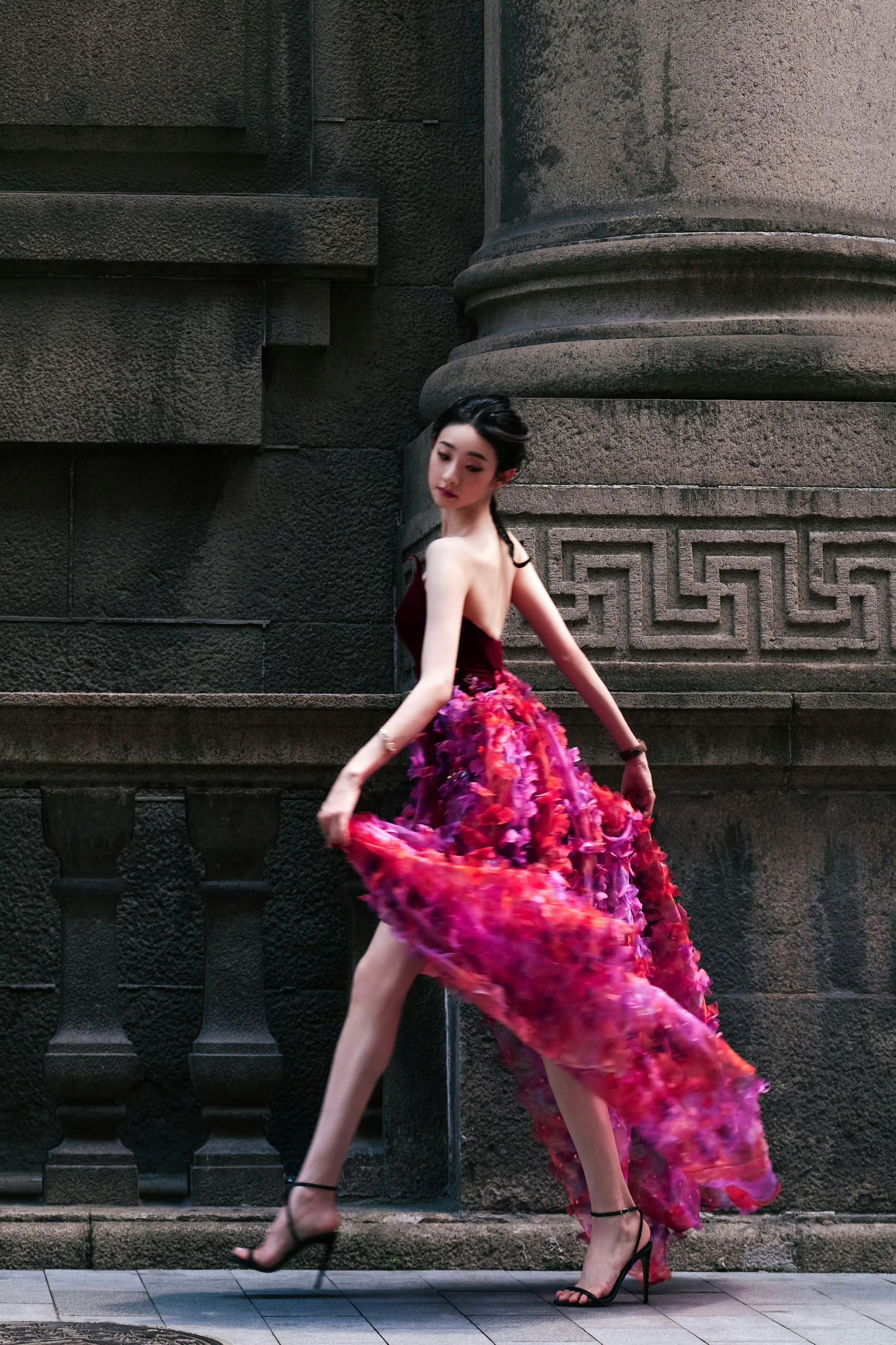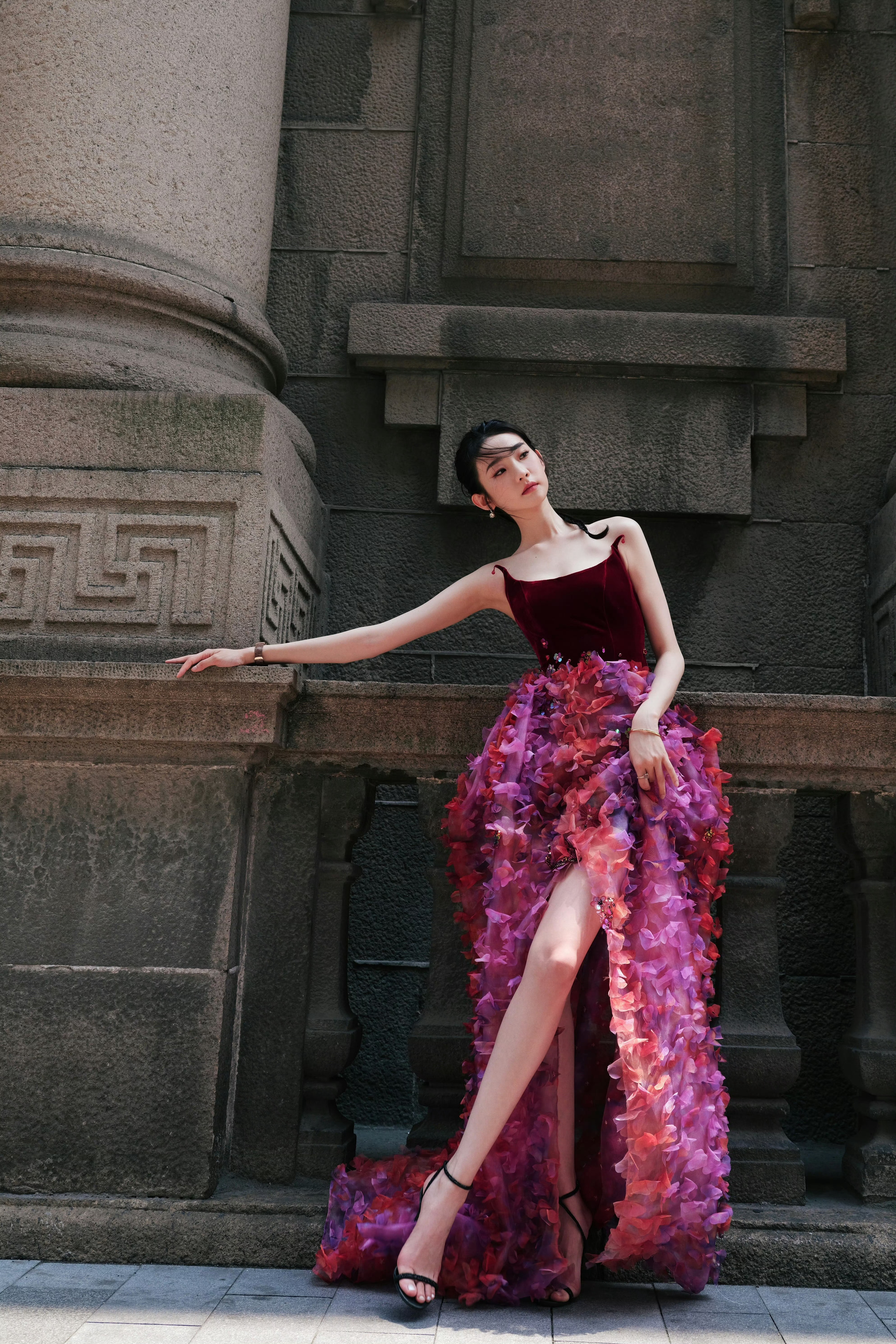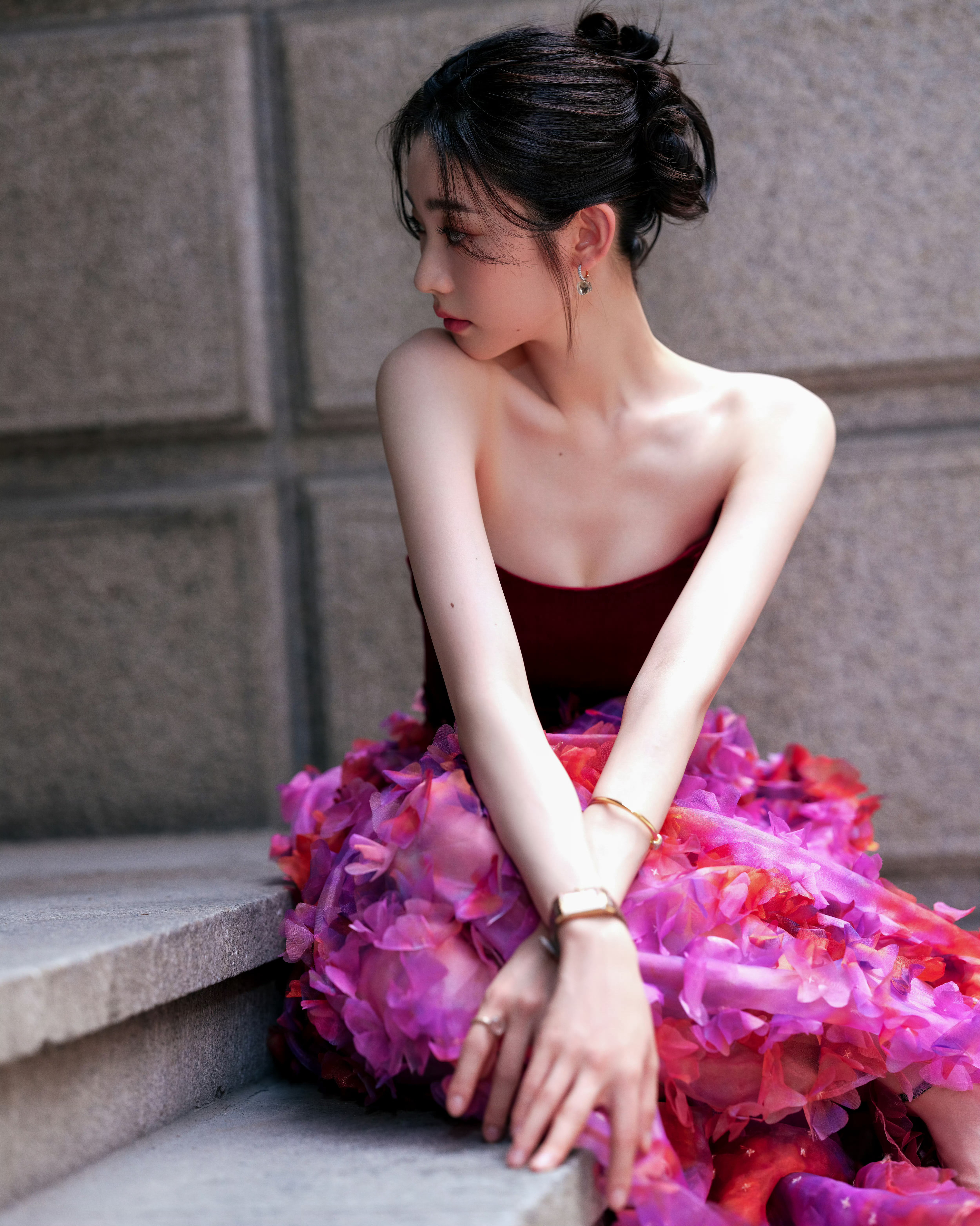 张艺凡浪漫街拍,行走中的玫瑰美人