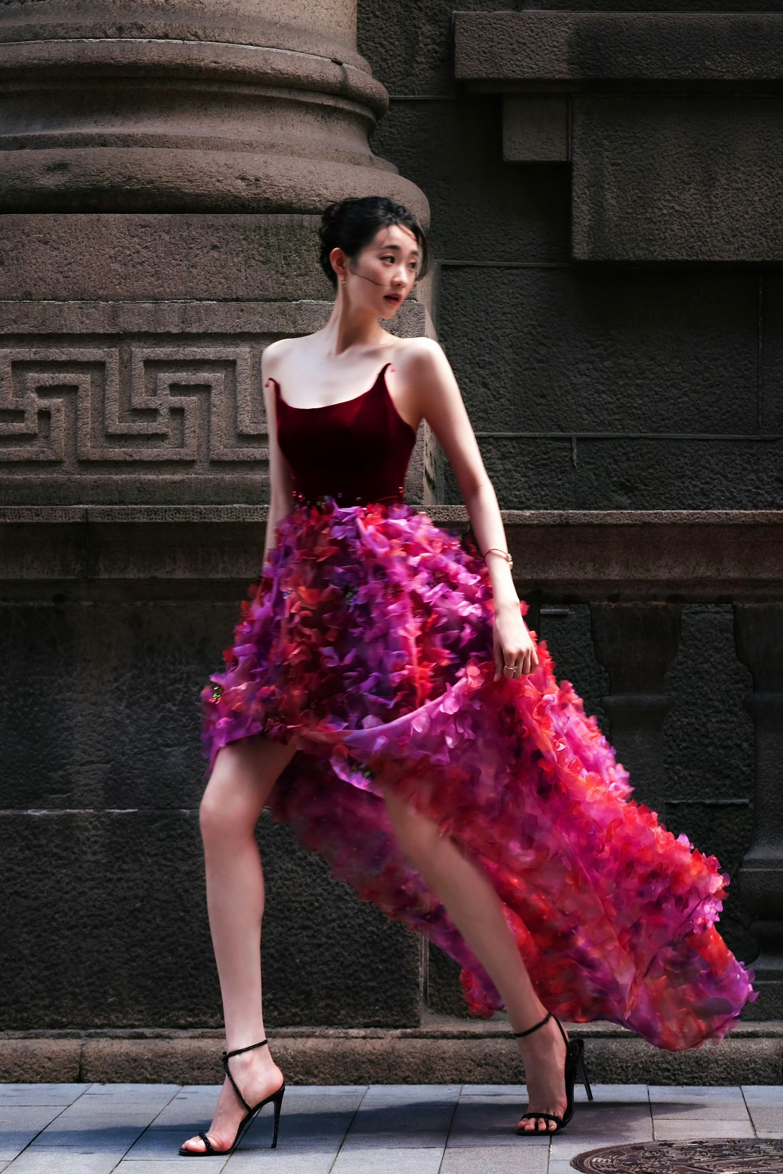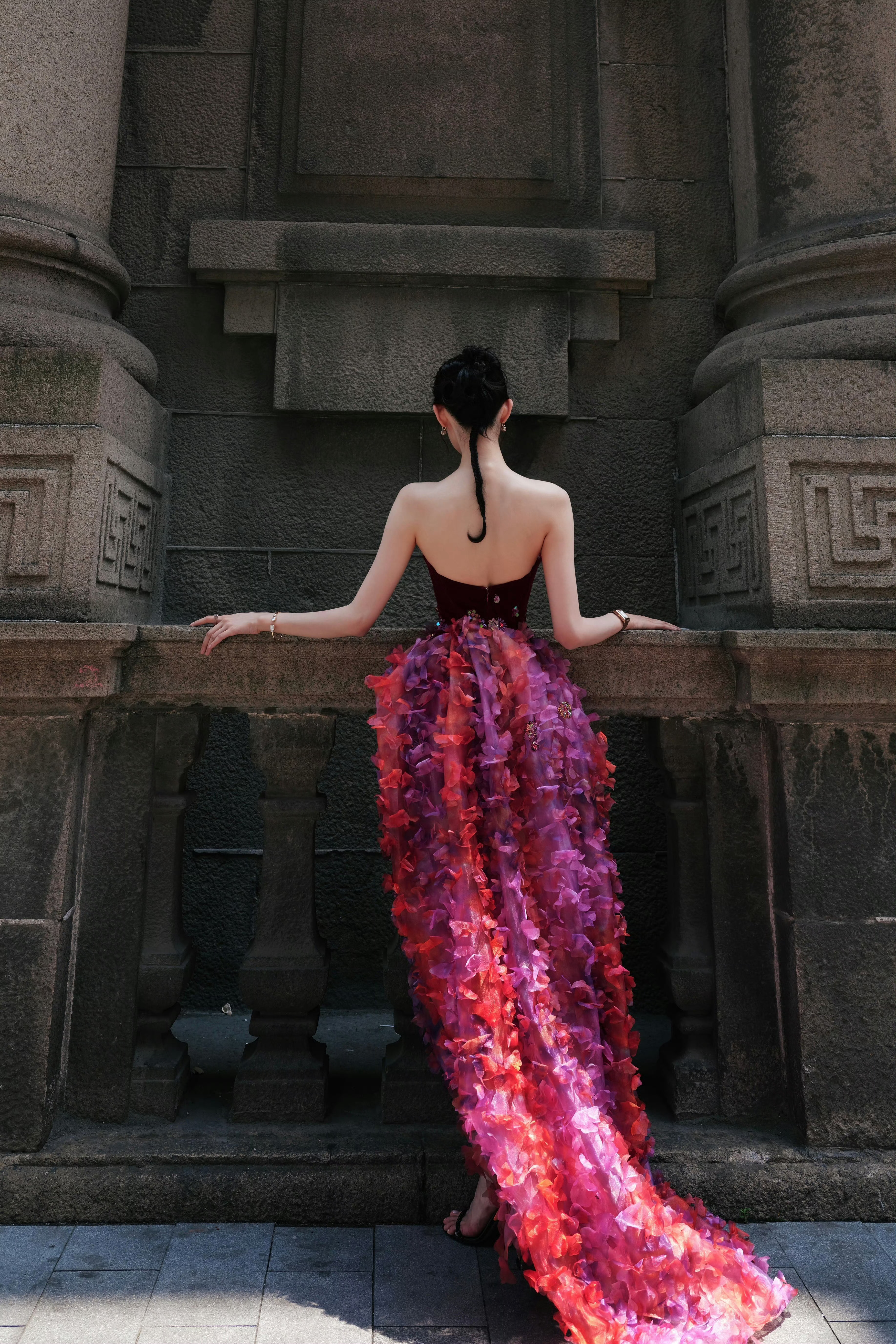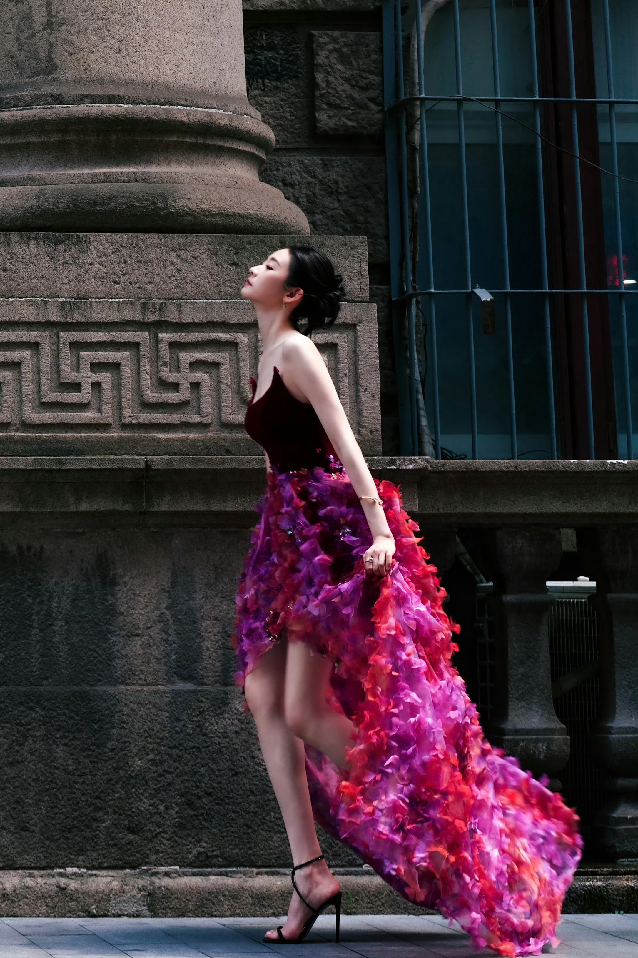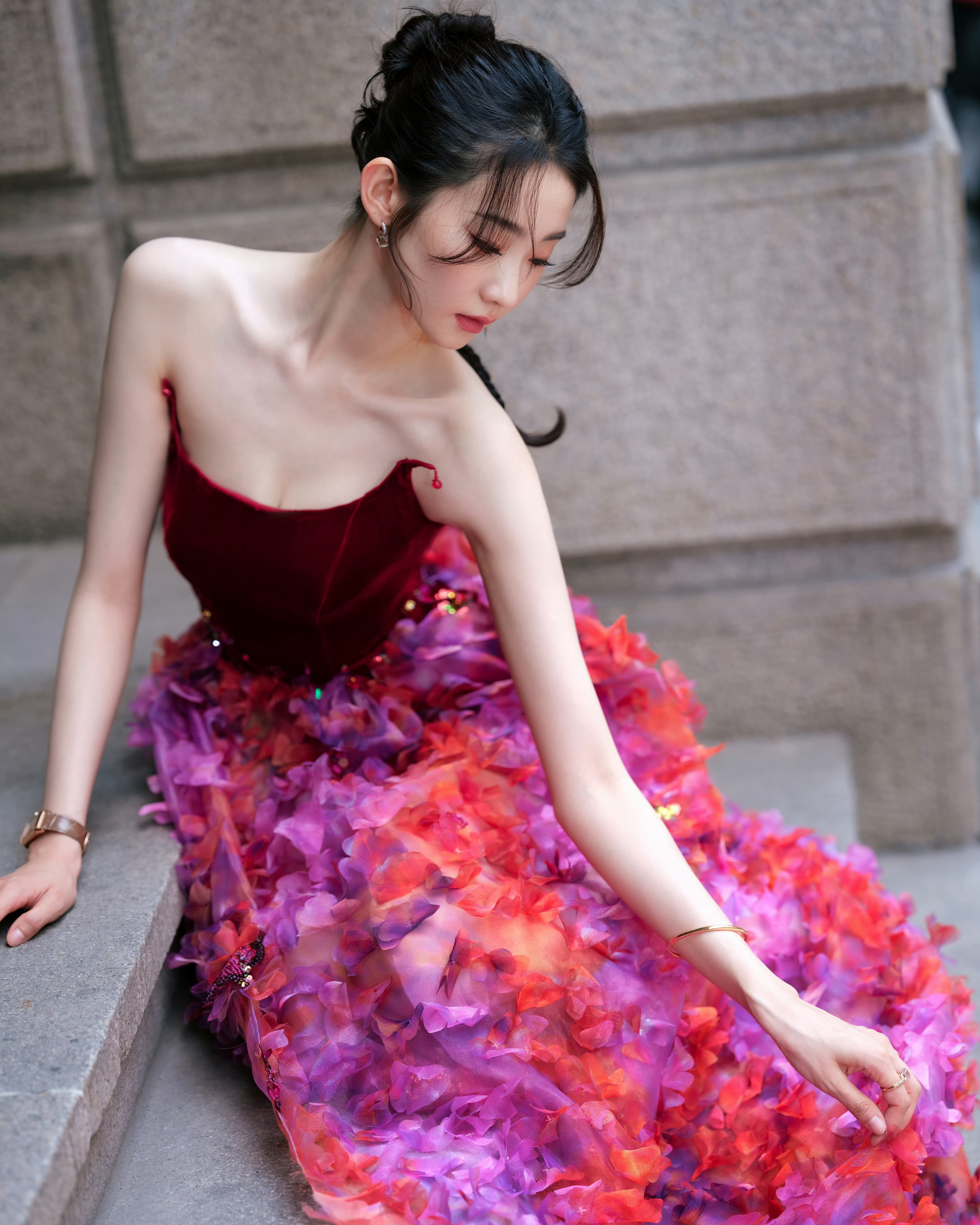 张艺凡浪漫街拍,行走中的玫瑰美人