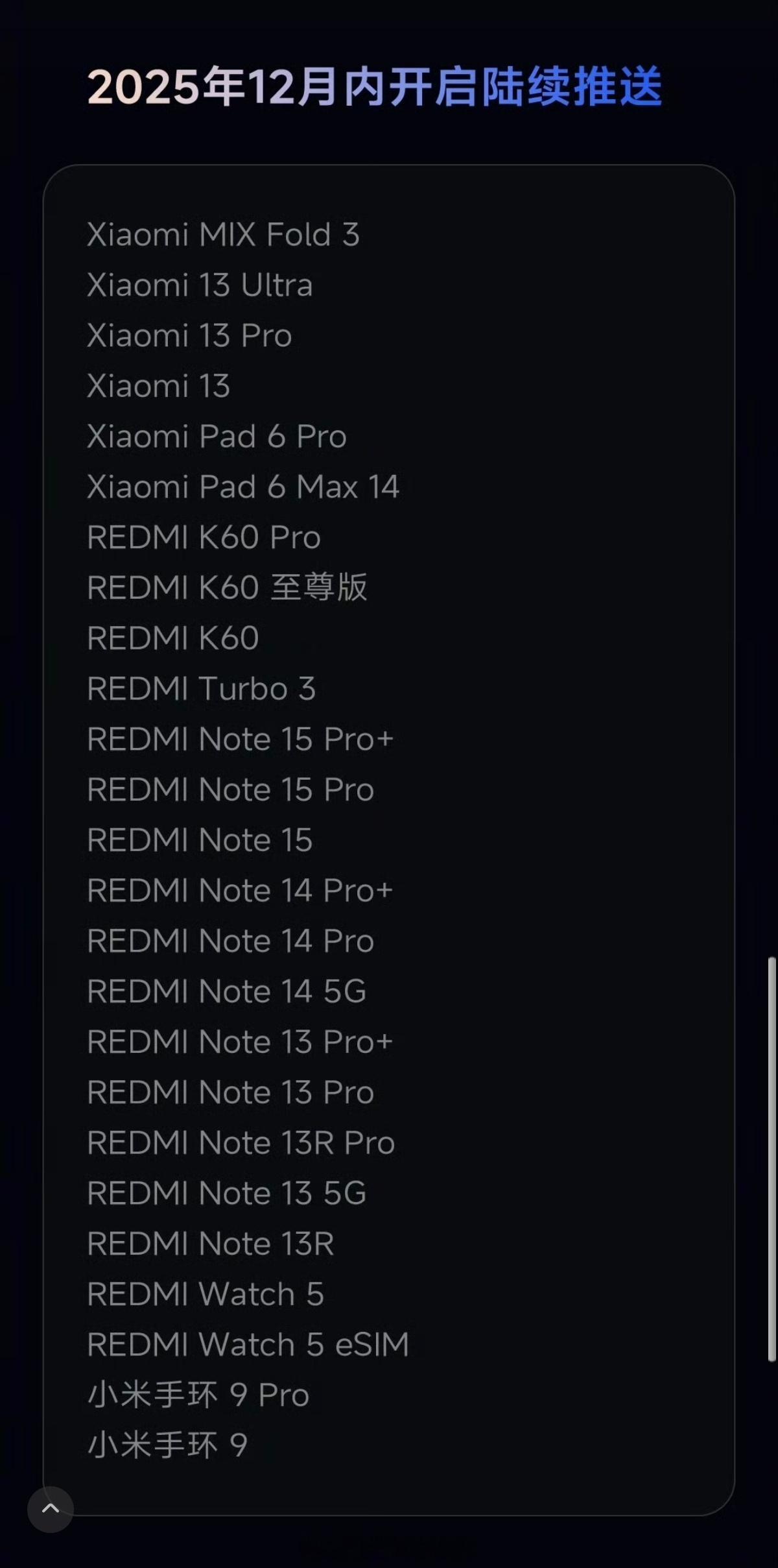 新的一批OS3推送开始了。REDMI Note 15 Pro+已推送小米澎湃OS3 OS3.0.2.0.WPRCNXM正式版内测,有设备的小伙伴可以去更新了。