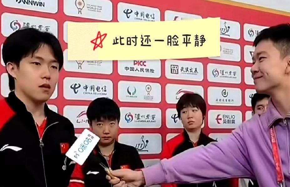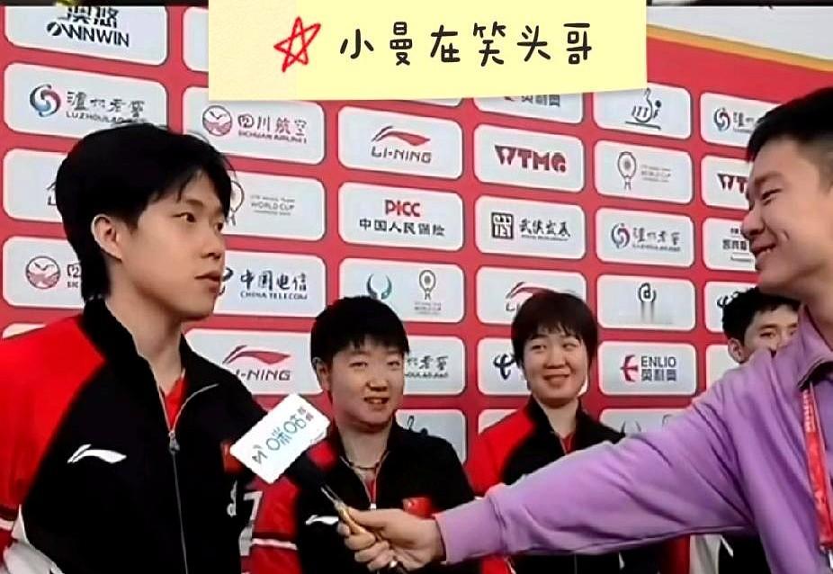 王楚钦到底说了啥,把他搭档蒯曼急成这样? 王楚钦在前头接受采访,后面的蒯曼简直是上演了一出内心大戏。她那个表情,一会儿偷笑,一会儿挑眉,根本绷不住,被网友封为新晋“大漏勺”,感觉啥秘密都知道。这小表情丰富得,都快把王楚钦想说又没说的话全写脸上了。 俩人本来就是混双搭档,私下里关系铁。蒯曼是队里的“气氛担当”,之前训练就因为王楚钦搞怪笑场,被教练点名要她专注点。她就是那种,那种藏不住事儿的人,一看到搭档发言,下意识的反应骗不了人。 这下可把球迷们给整乐了,直接在社交媒体上喊话:“小曼姐,你喜欢什么颜色的麻袋?” 这个“麻袋梗”一下就火了,其实就是大家伙儿用开玩笑的方式,表达对王楚钦发言内容的好奇心。蒯曼本人还去点了赞,这互动太有意思了。 国乒队这种表情包文化一直都很火。从孙颖莎的“捏脸杀”到现在的蒯曼“吃瓜脸”,运动员们真实的一面,让大家觉得特别亲近。 这下好了,以后蒯曼的“表情管理”估计要上难度了,大家看采访都得带个放大镜。