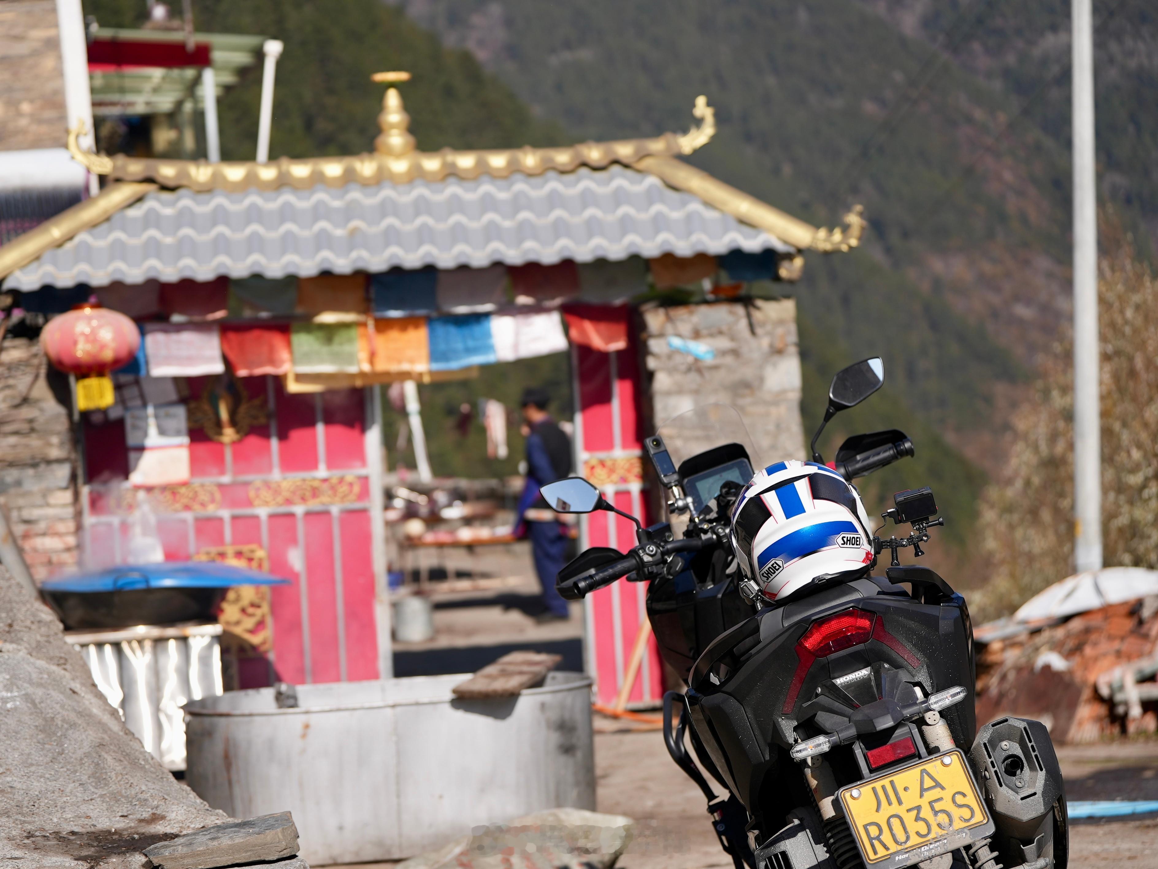 和摸摸去摩旅 因为要回成都,谢绝了老乡的杀猪菜,现在有点后悔了!本田adv350摩托车机车摸摸爱分享 阿坝·猛古村