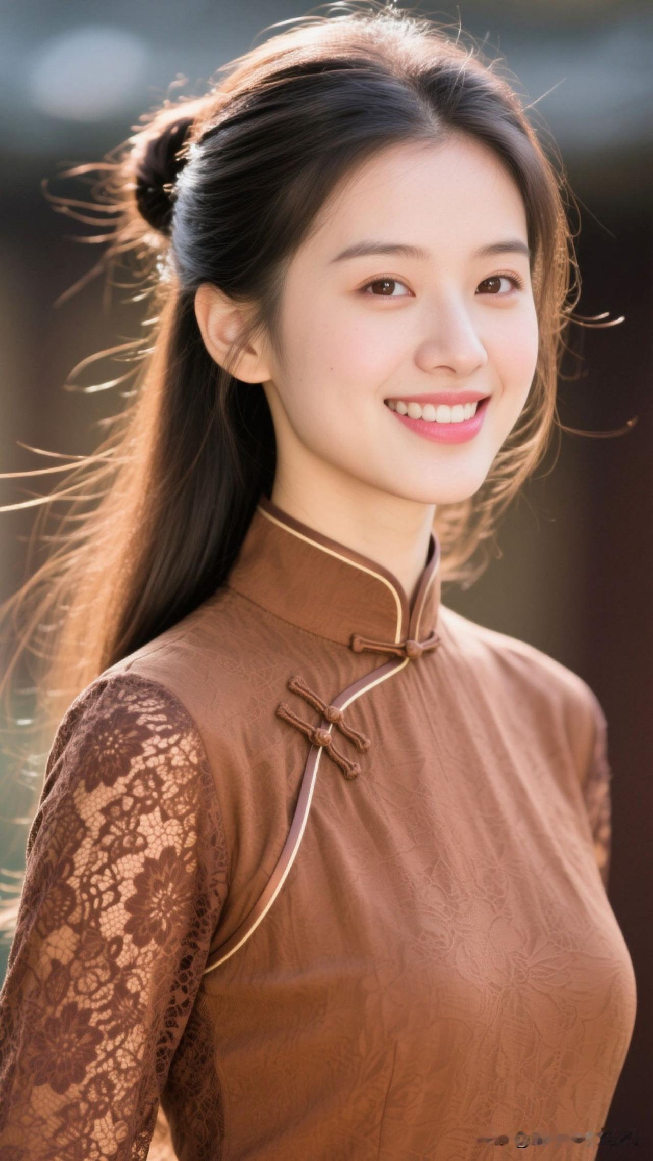 焦糖色旗袍裹着黄昏的柔,盘扣系住风的软,笑意漫开时,整个东方韵致都成了流动的诗。旗袍漫步秋景 秋枫黑旗袍 旗袍秋日大片 甜风旗袍图