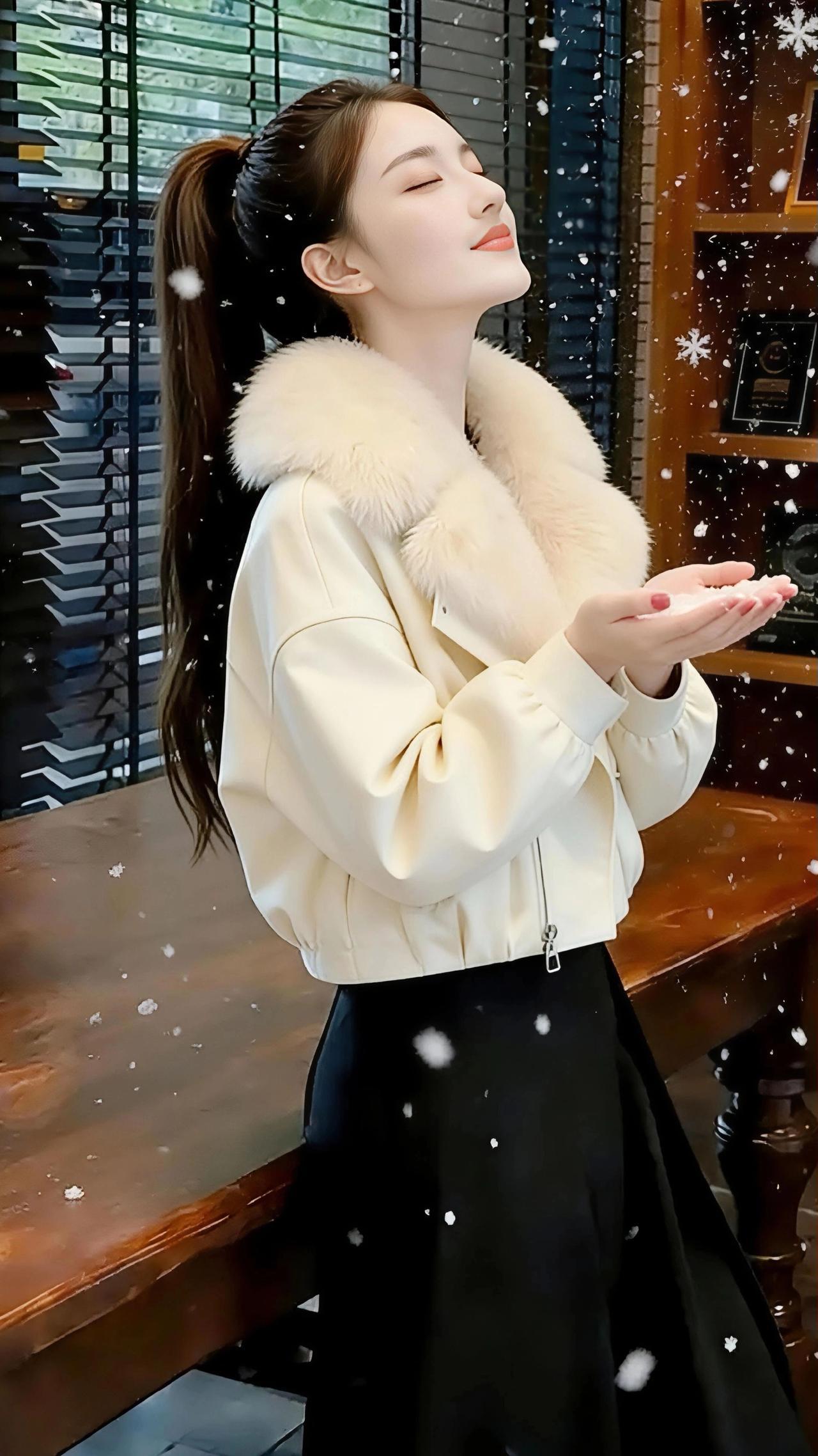 雪落时,她正披着那袭奶白的绒领短衣,像把冬日光晕揉进了衣襟里。 绒领软得像积了半季的云,垂在肩颈处,连风掠过都慢了半拍。黑裙是裁好的夜,漫过脚踝时,恰好接住窗外飘进来的雪——她抬袖拢住一捧,指尖便沾了满掌的凉,却暖得像拢住了整段冬。 有时倚着路灯,衣摆蹭过砖缝里的霜;有时临窗侧身,绒领蹭着玻璃上的雾。发梢的马尾晃着,把雪天的静,晃成了软乎乎的风。 她不必说什么,光是站在那里,就成了冬里最温的那缕烟火。 高级感穿搭 小个子穿搭 穿搭 棉服