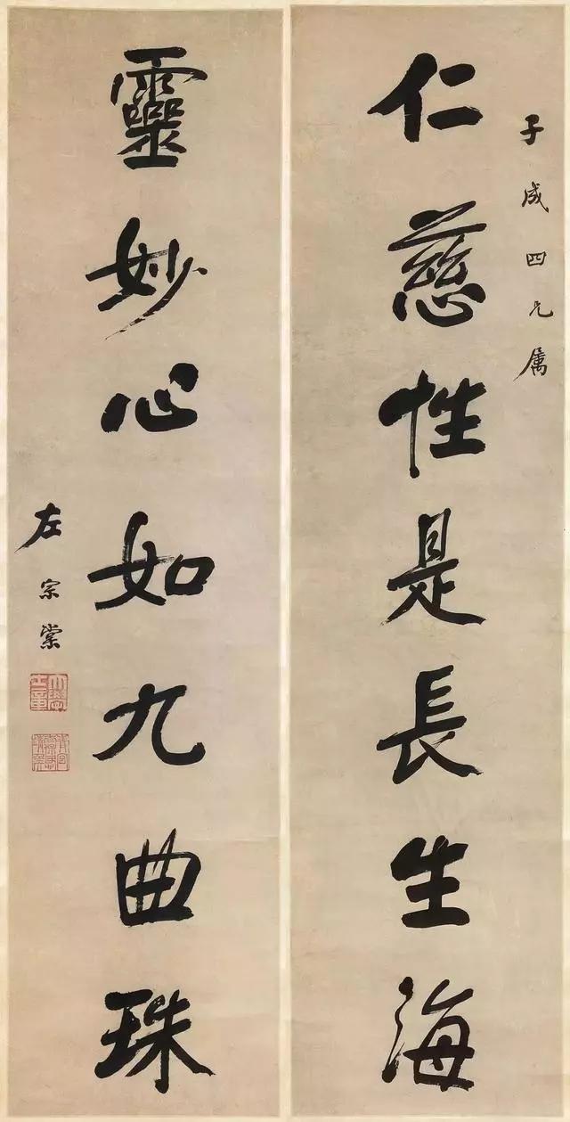 左宗棠是晚清中兴四名臣之一,他在历史上的最大贡献是收复新疆,因为他中国才有如此辽阔的疆土,我们不能忘了这位历史功臣。 今天看左宗棠两幅对联书法,带着文气,又拥有佛性,还体现文雅之气,并未表现出征西大将军的霸气。